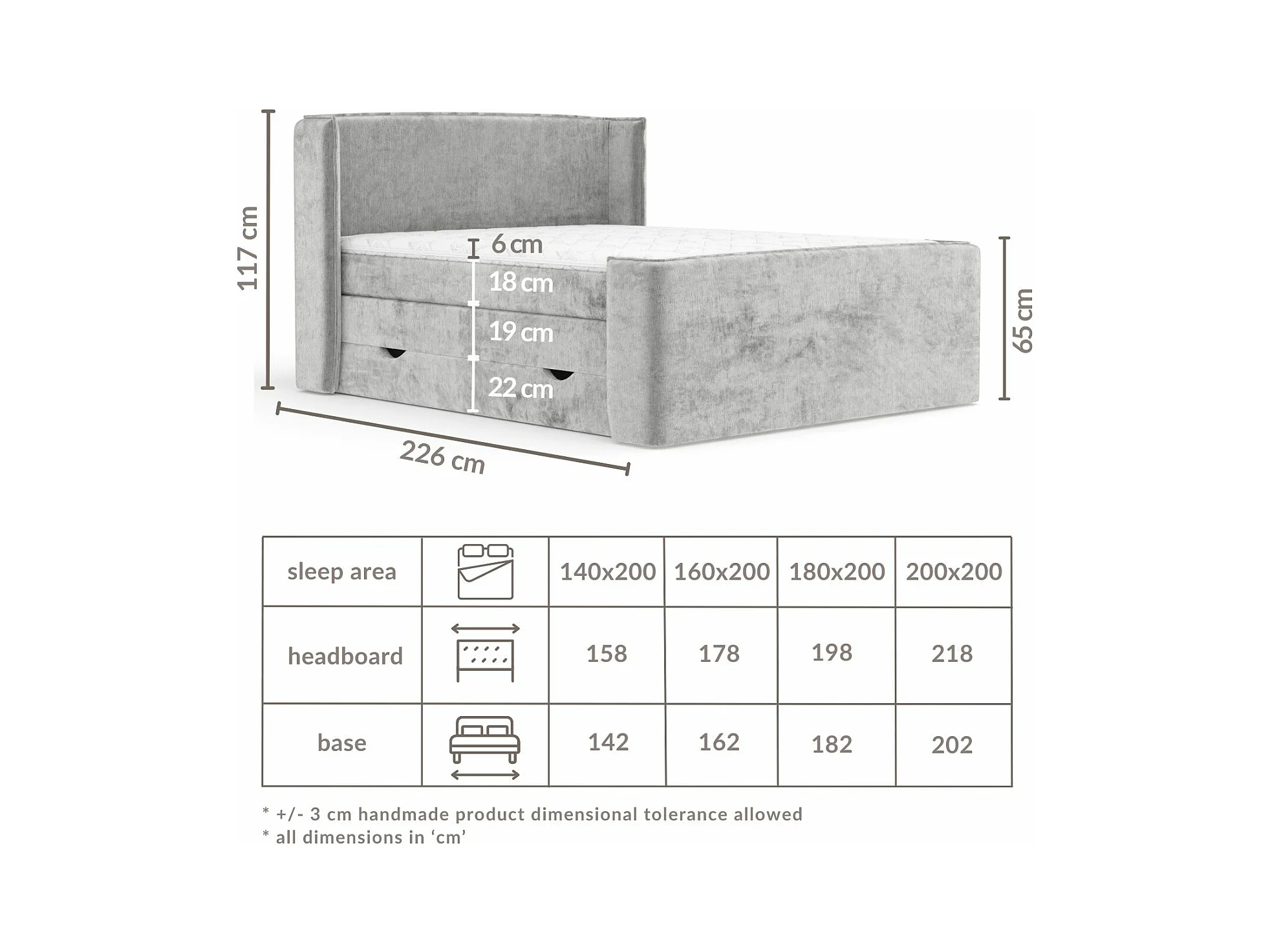 Boxspringbett aus Webstoff Rosabel - Matratze - Toppermatratze - 140x200 cm - hellgrau