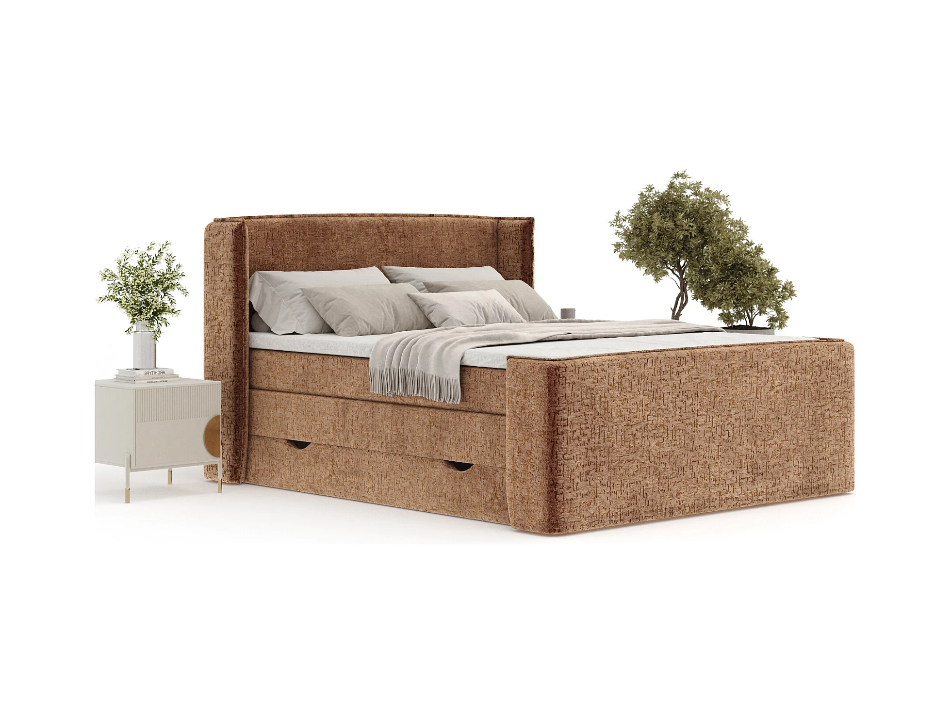 Boxspringbett aus Chenille-Stoff Passion - Matratze - Toppermatratze - 140x200 cm - kupferfarbe