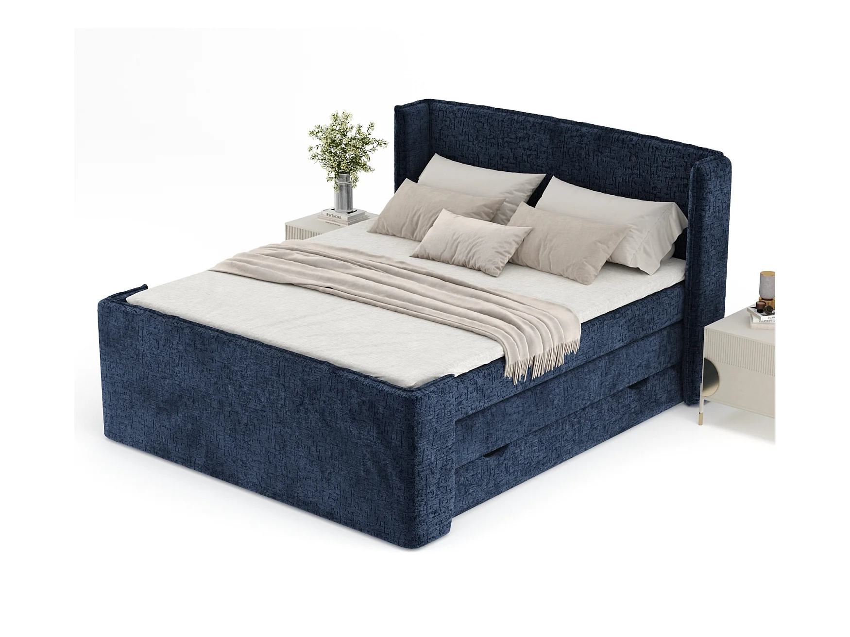 Boxspringbett aus Chenille-Stoff Freeland - Matratze - Toppermatratze - 200x200 cm - marineblau