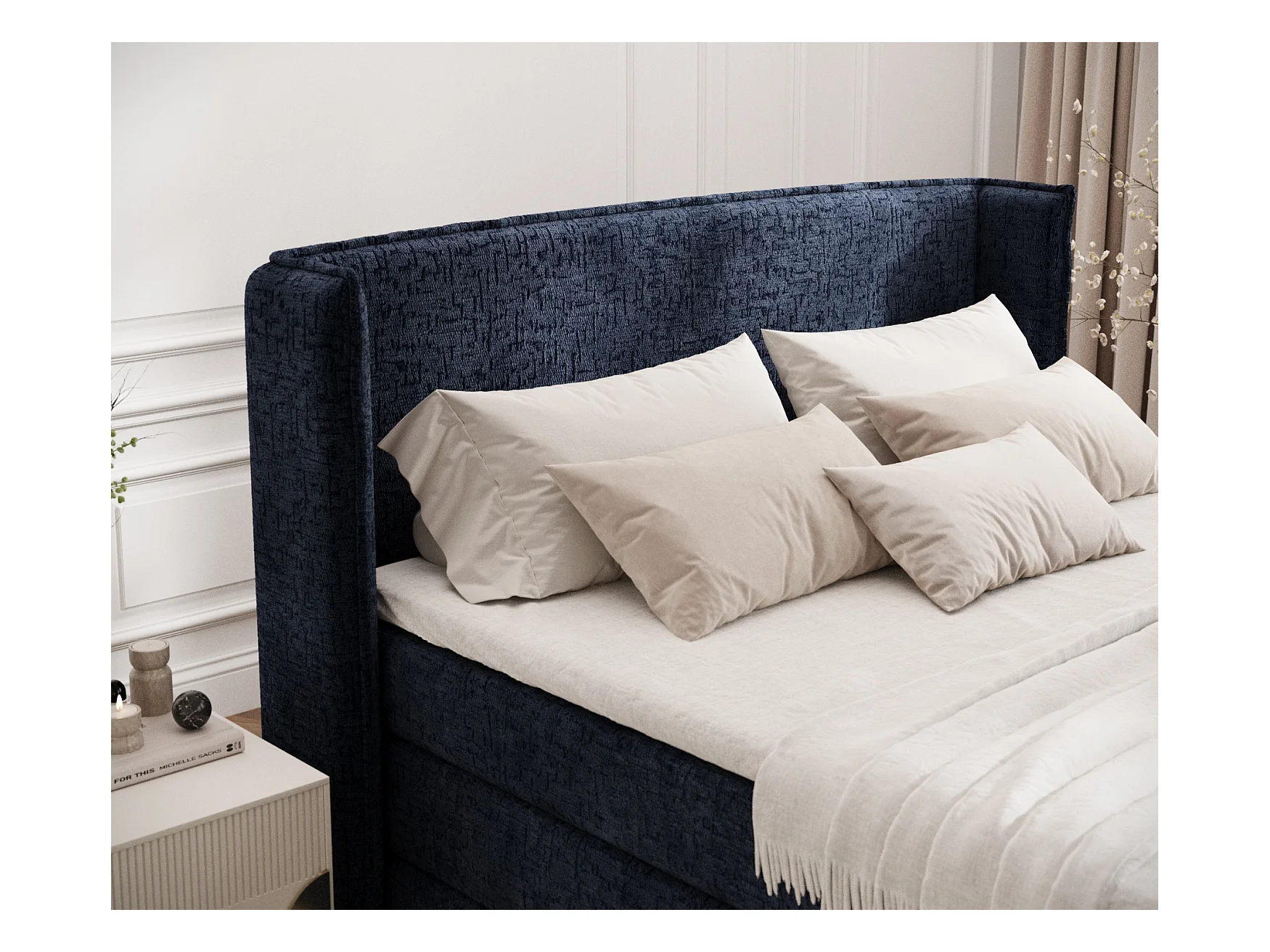 Boxspringbett aus Chenille-Stoff Ava - Matratze - Toppermatratze - 200x200 cm - marineblau