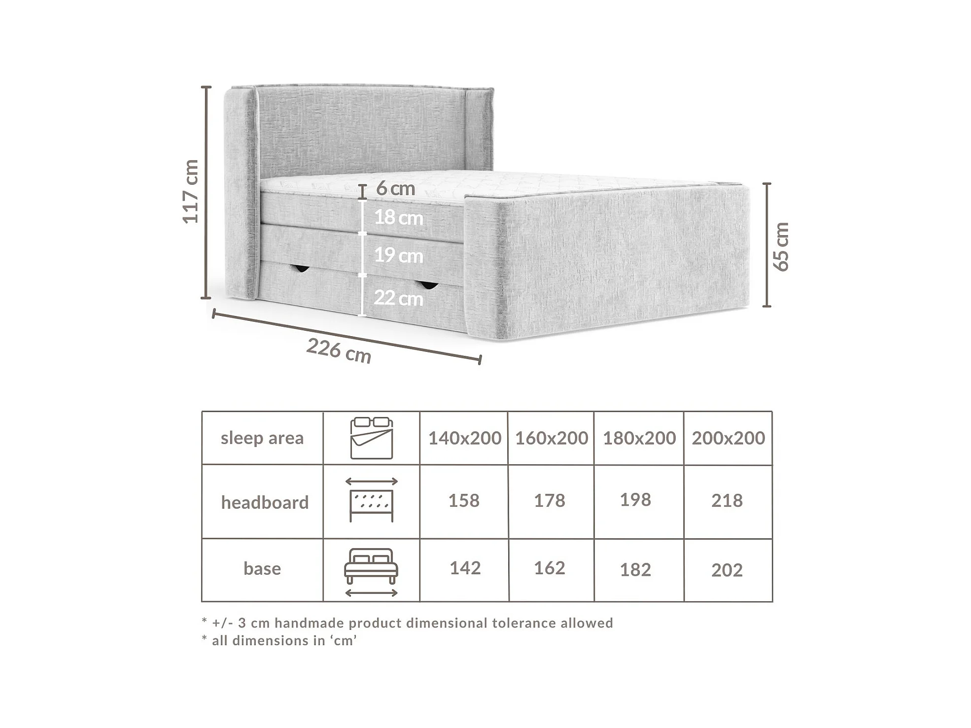 Boxspringbett aus Webstoff Freeland - Matratze - Toppermatratze - 200x200 cm - marineblau