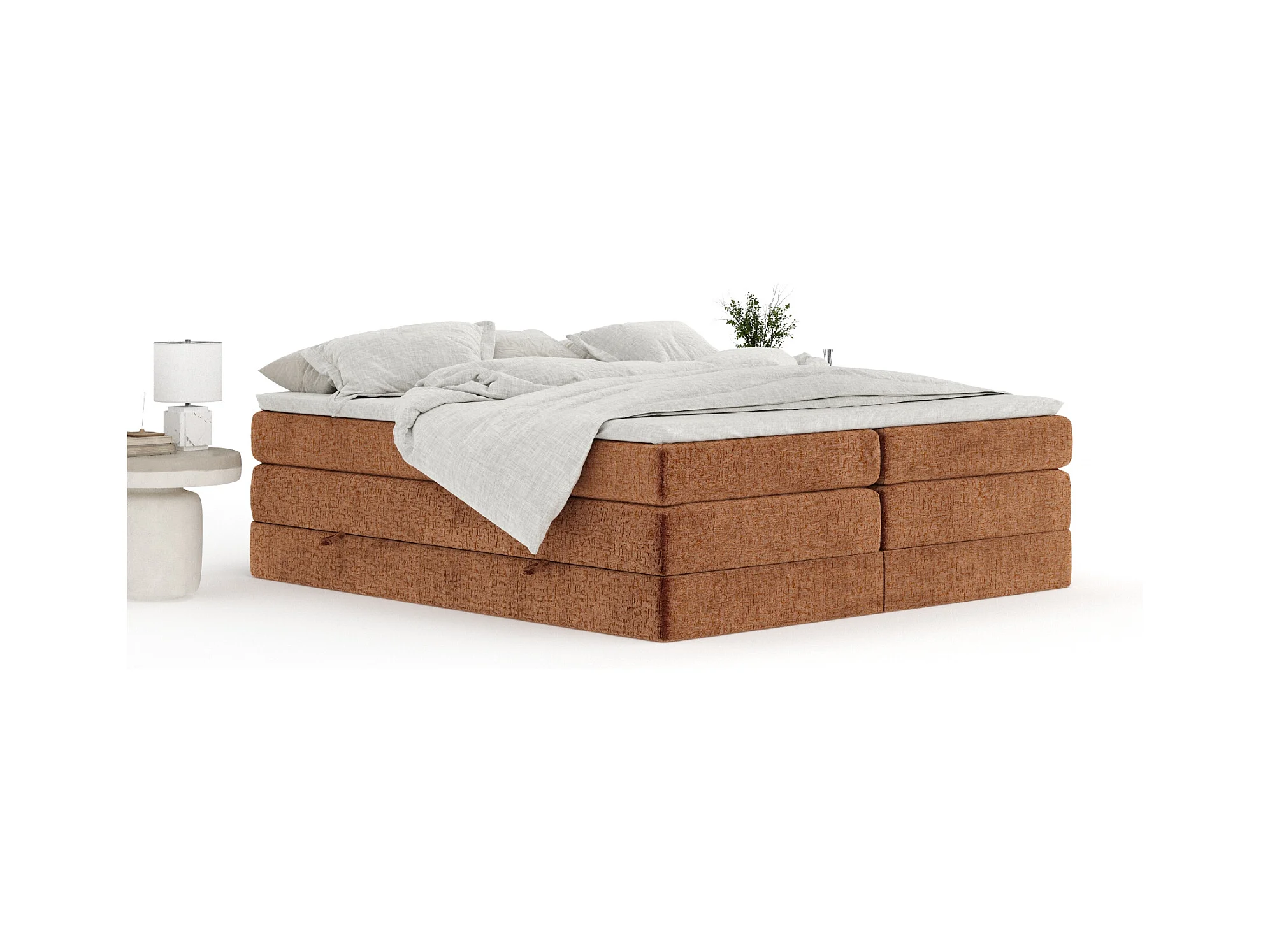 Boxspringbett aus Chenille-Stoff Juniper - Matratze - Toppermatratze - 140x200 cm - kupferfarbe