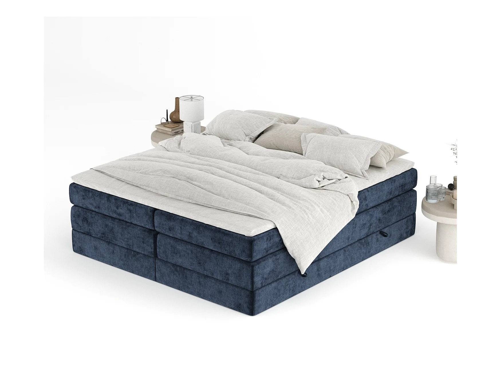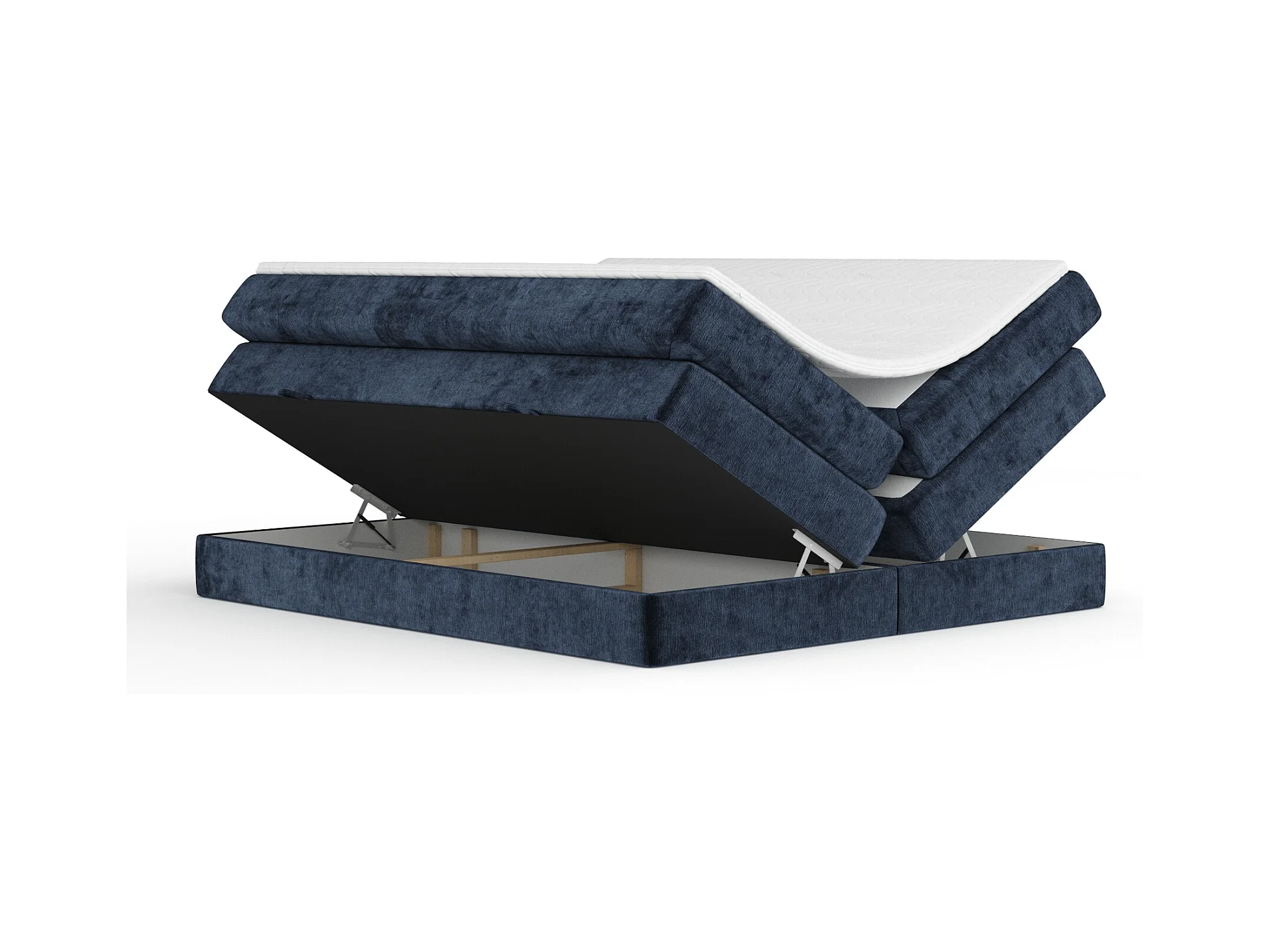 Boxspringbett aus Chenille-Stoff Juniper - Matratze - Toppermatratze - 140x200 cm - marineblau
