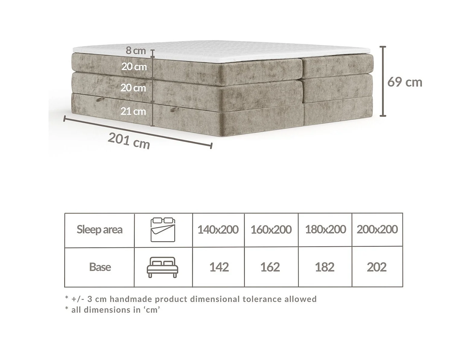 Boxspringbett aus Webstoff Freeland - Matratze - Toppermatratze - 140x200 cm - marineblau