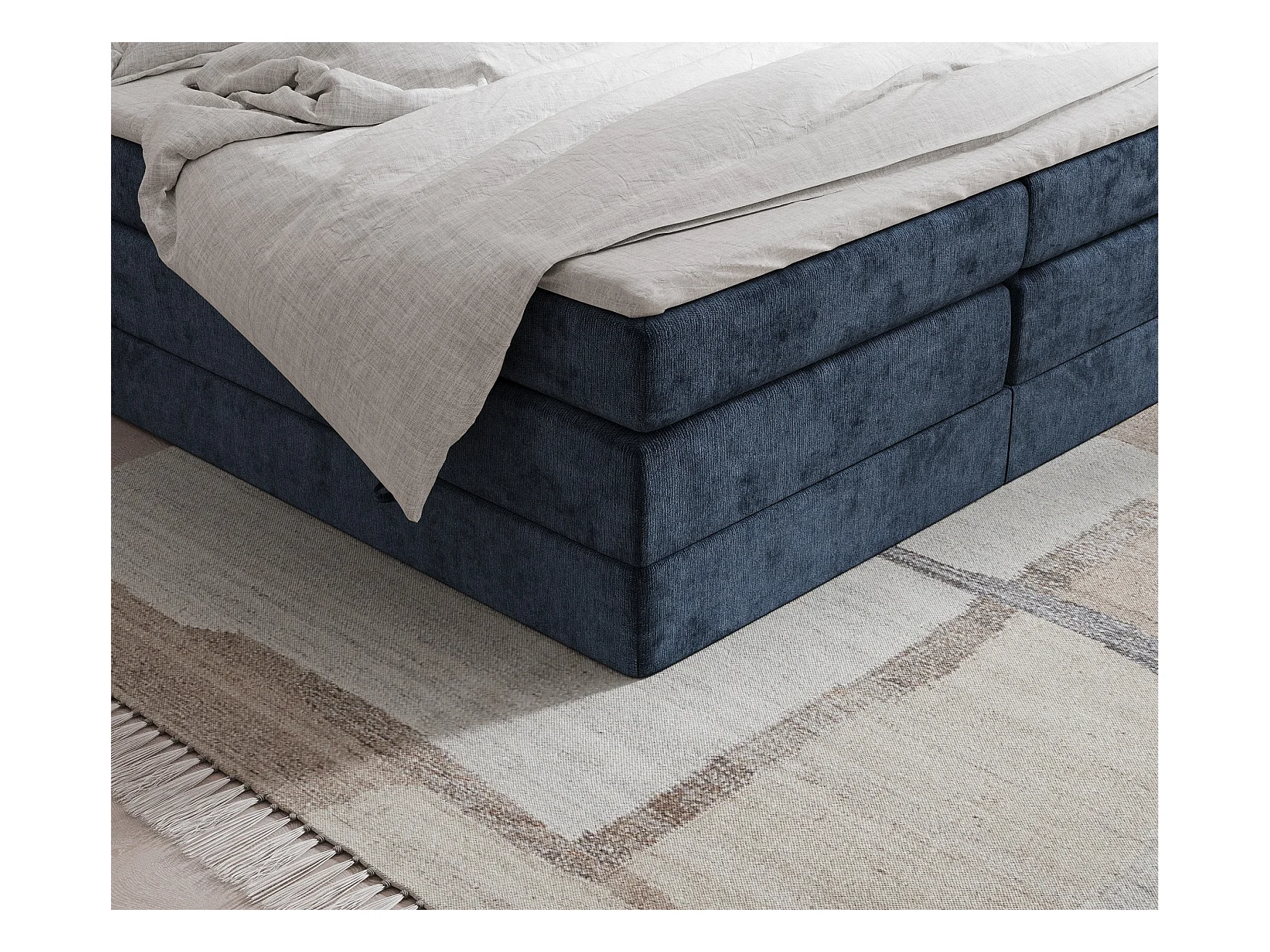 Boxspringbett aus Chenille-Stoff Ava - Matratze - Toppermatratze - 160x200 cm - marineblau