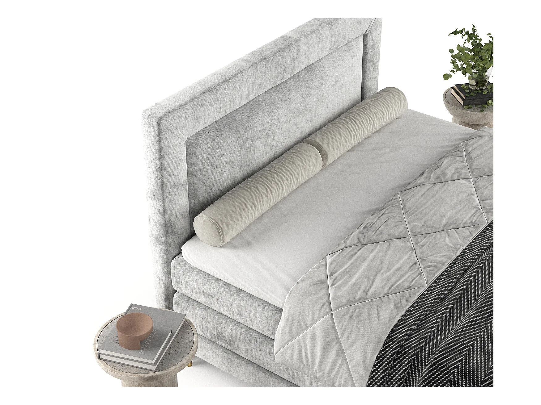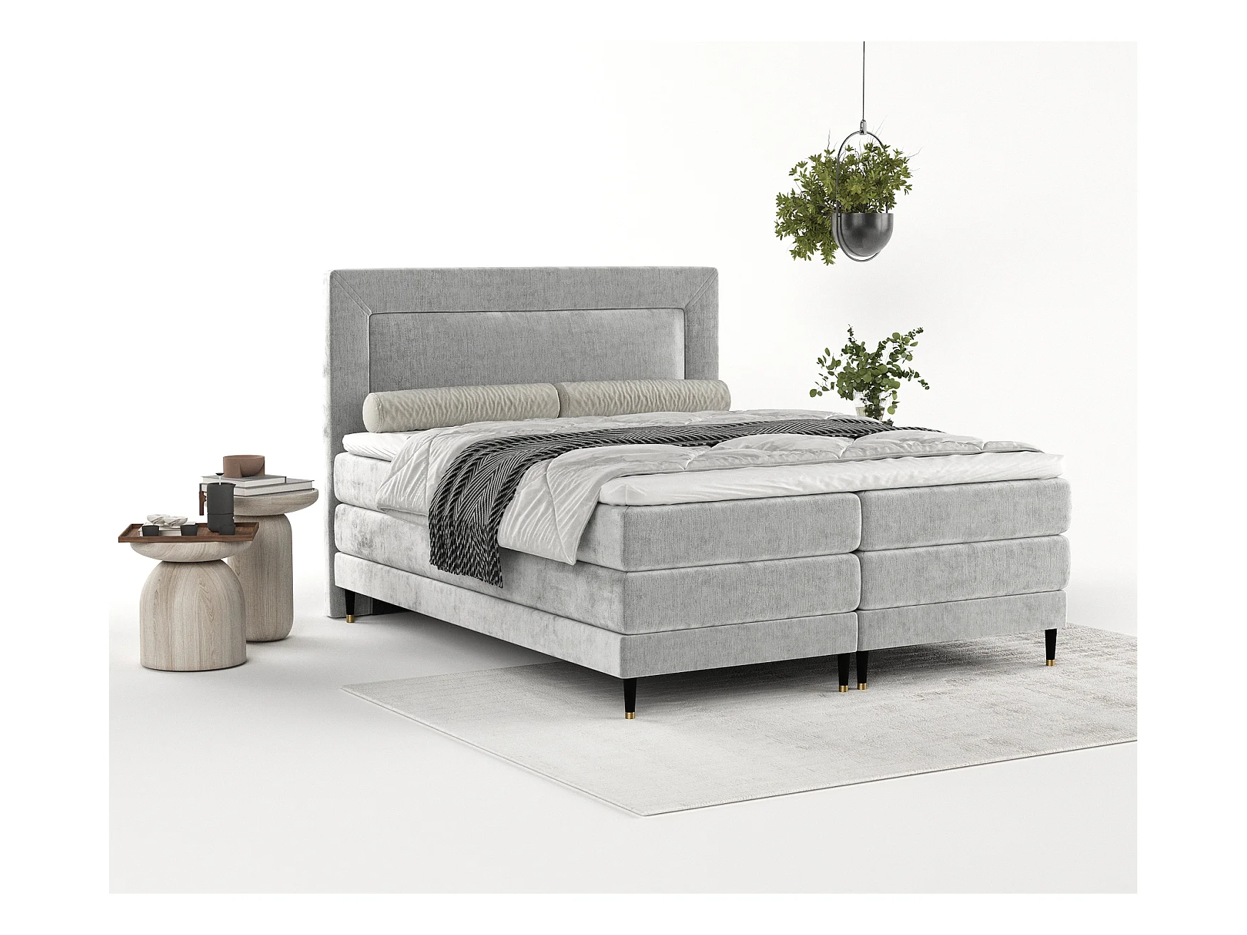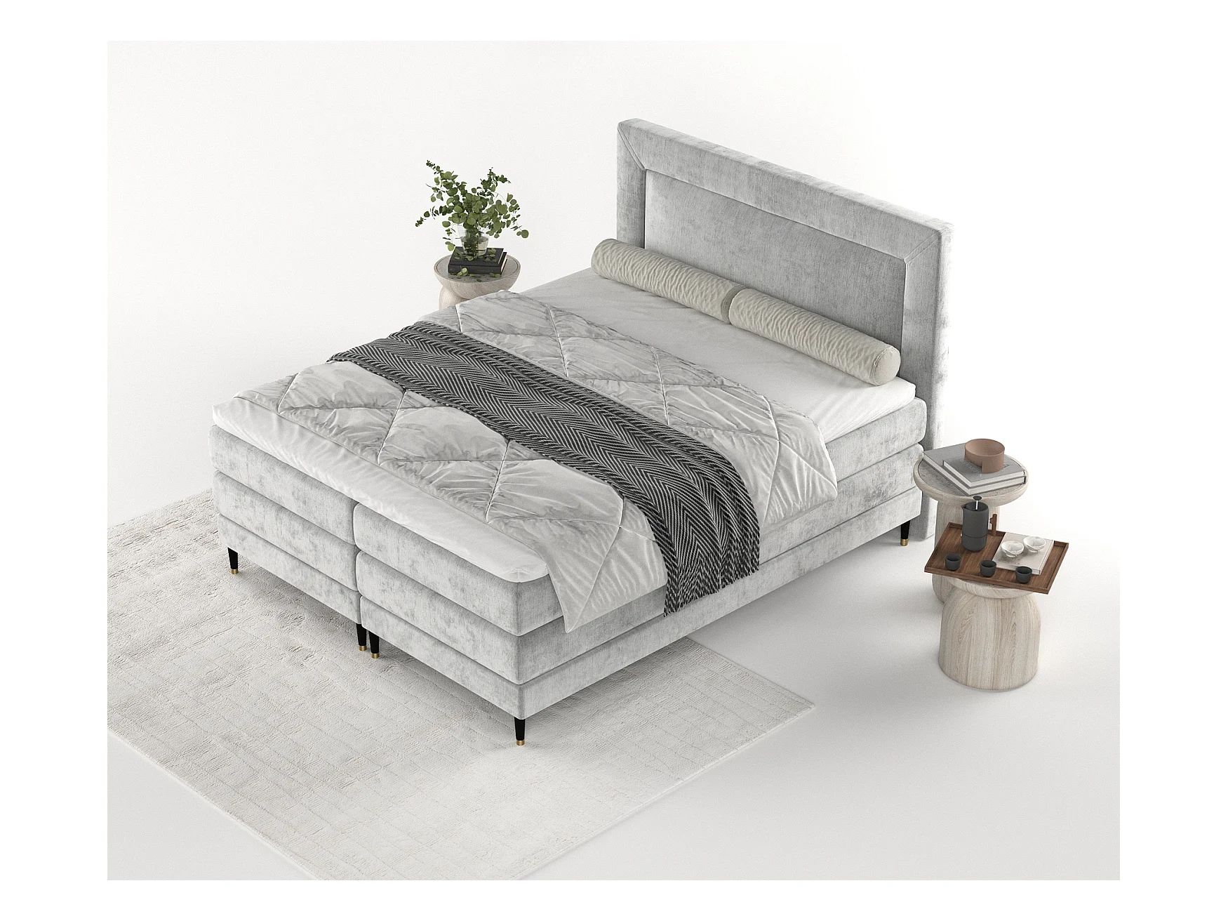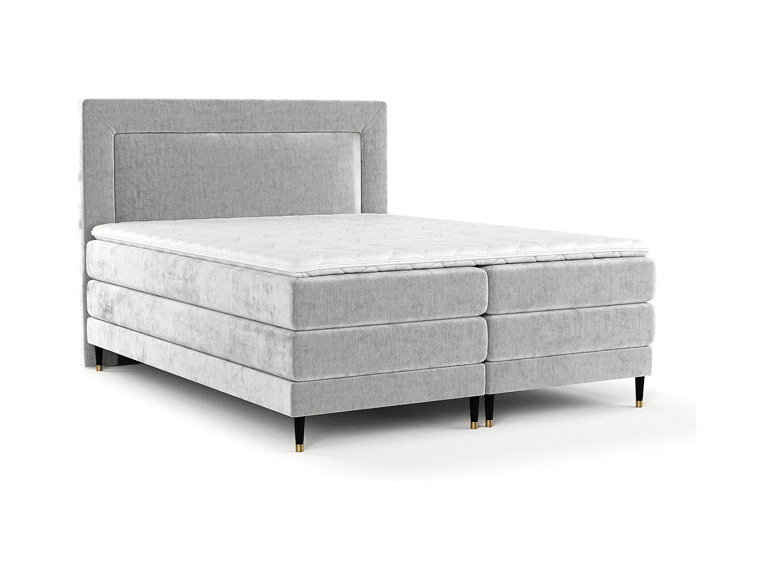 Boxspringbett aus Chenille-Stoff Madame - Matratze - Toppermatratze - 180x200 cm - hellgrau