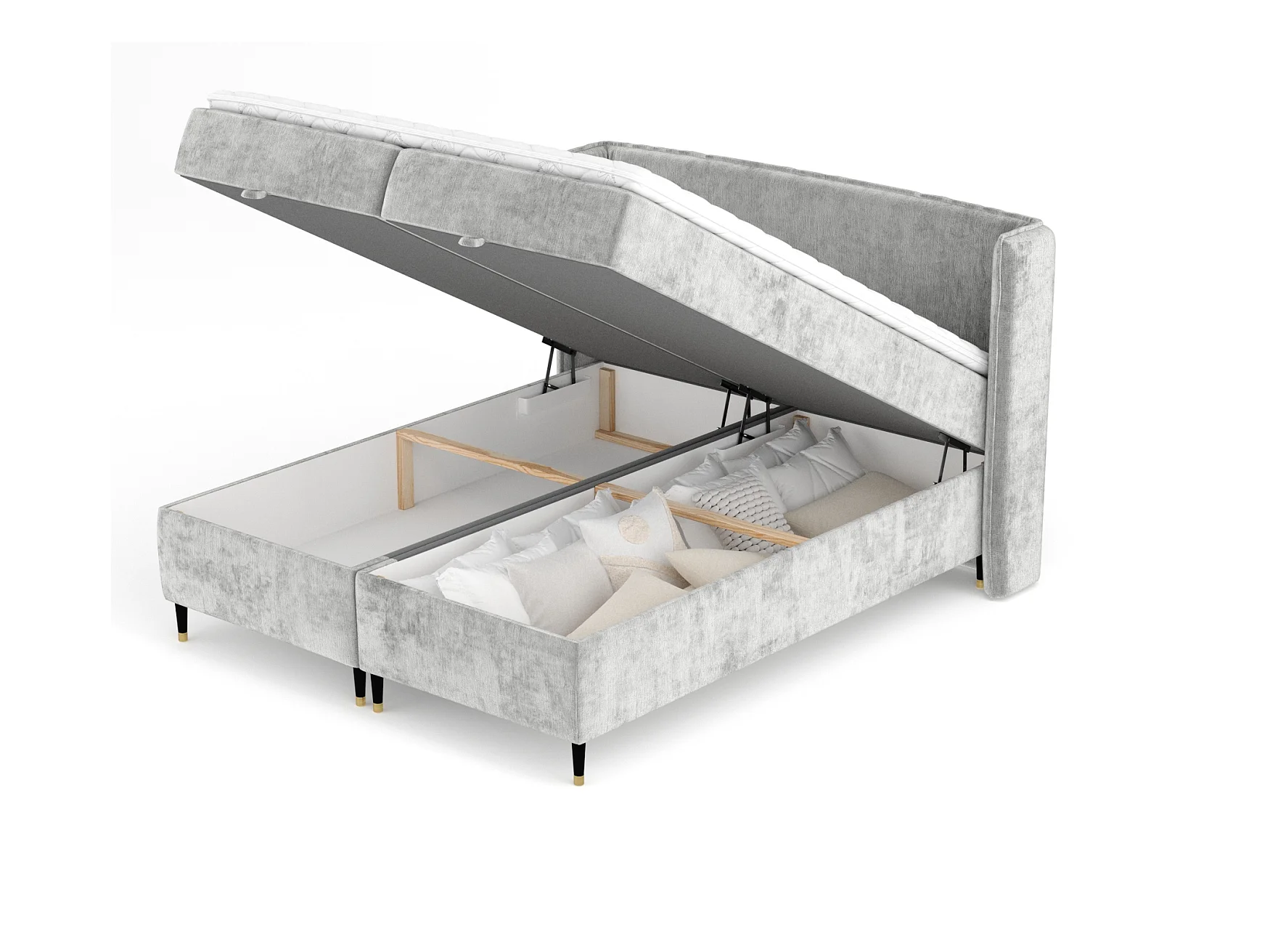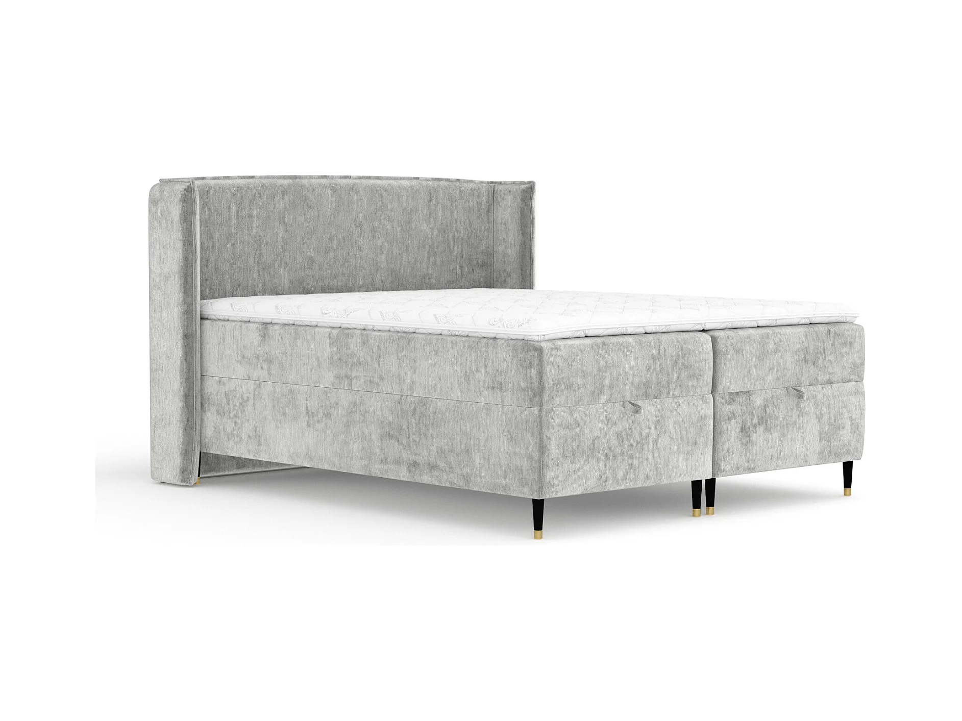 Boxspringbett aus Chenille-Stoff Passion - Matratze - Toppermatratze - 140x200 cm - hellgrau