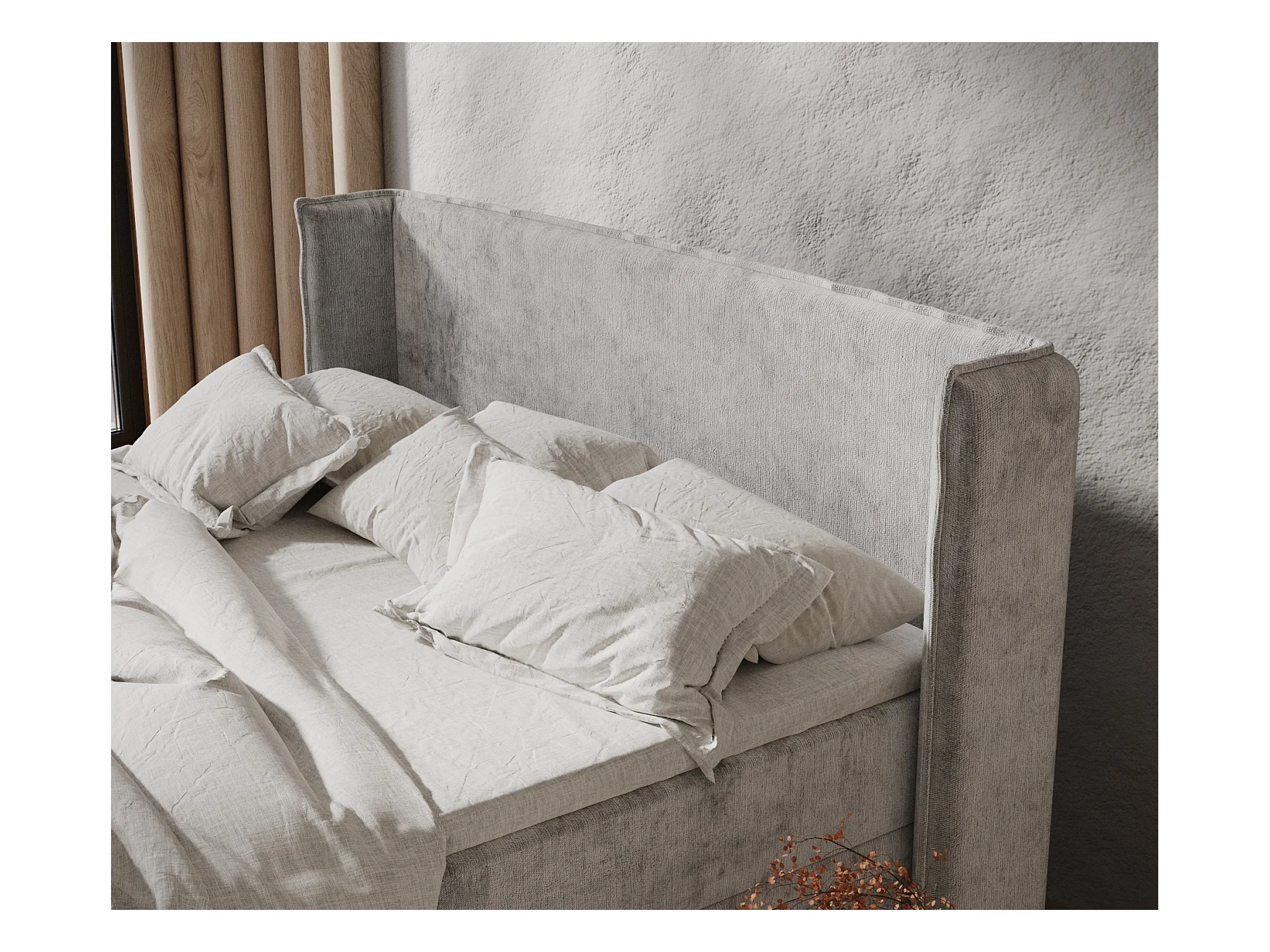 Boxspringbett aus Chenille-Stoff Passion - Matratze - Toppermatratze - 140x200 cm - grau