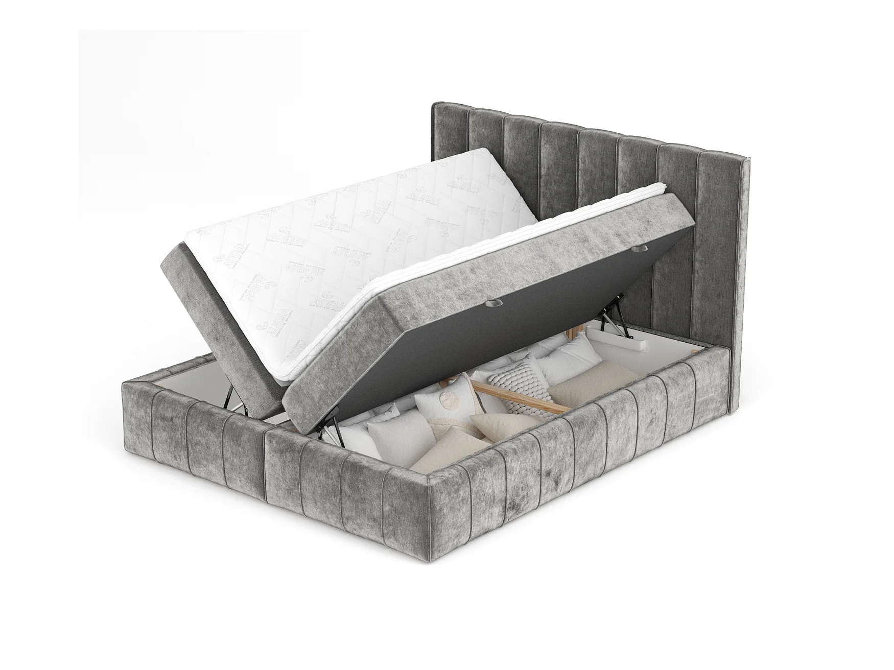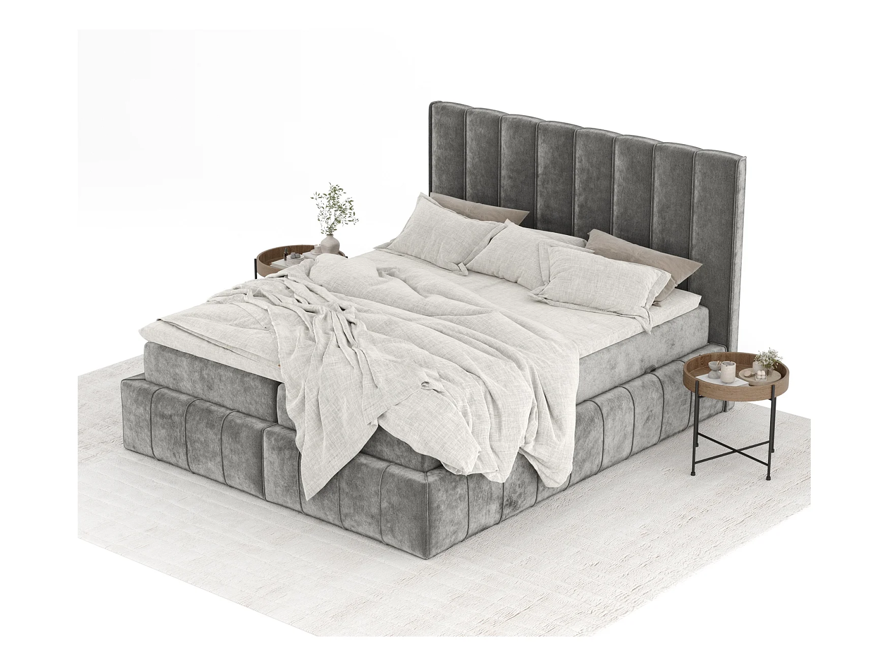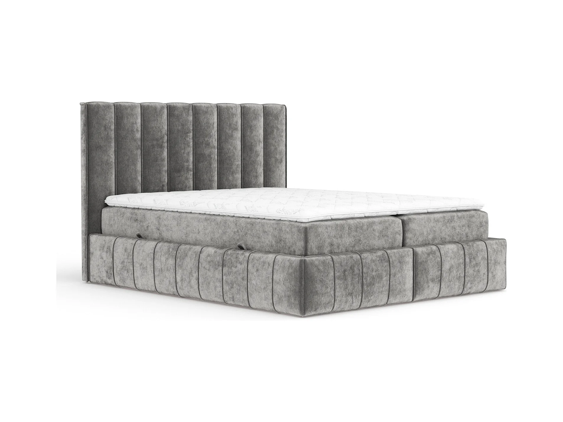 Boxspringbett aus Chenille-Stoff Passion - Matratze - Toppermatratze - 200x200 cm - grau