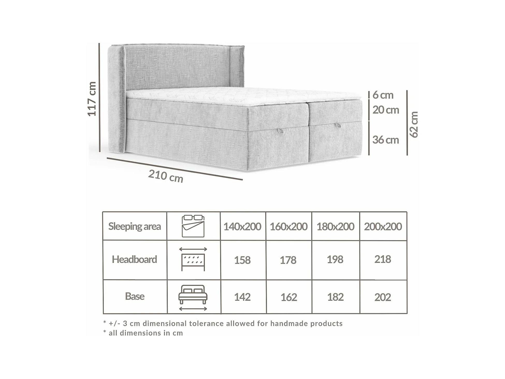 Boxspringbett aus Chenille-Stoff Passion - Matratze - Toppermatratze - 200x200 cm - kupferfarbe