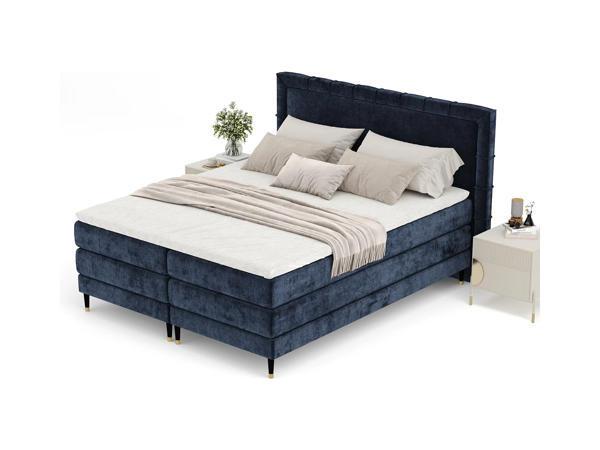 Boxspringbett aus Chenille-Stoff Rimini - Matratze - Toppermatratze - 140x200 cm - marineblau