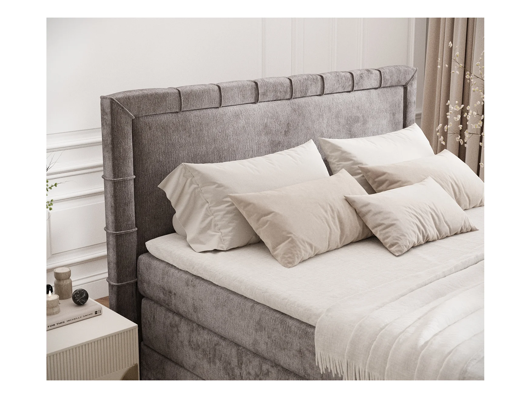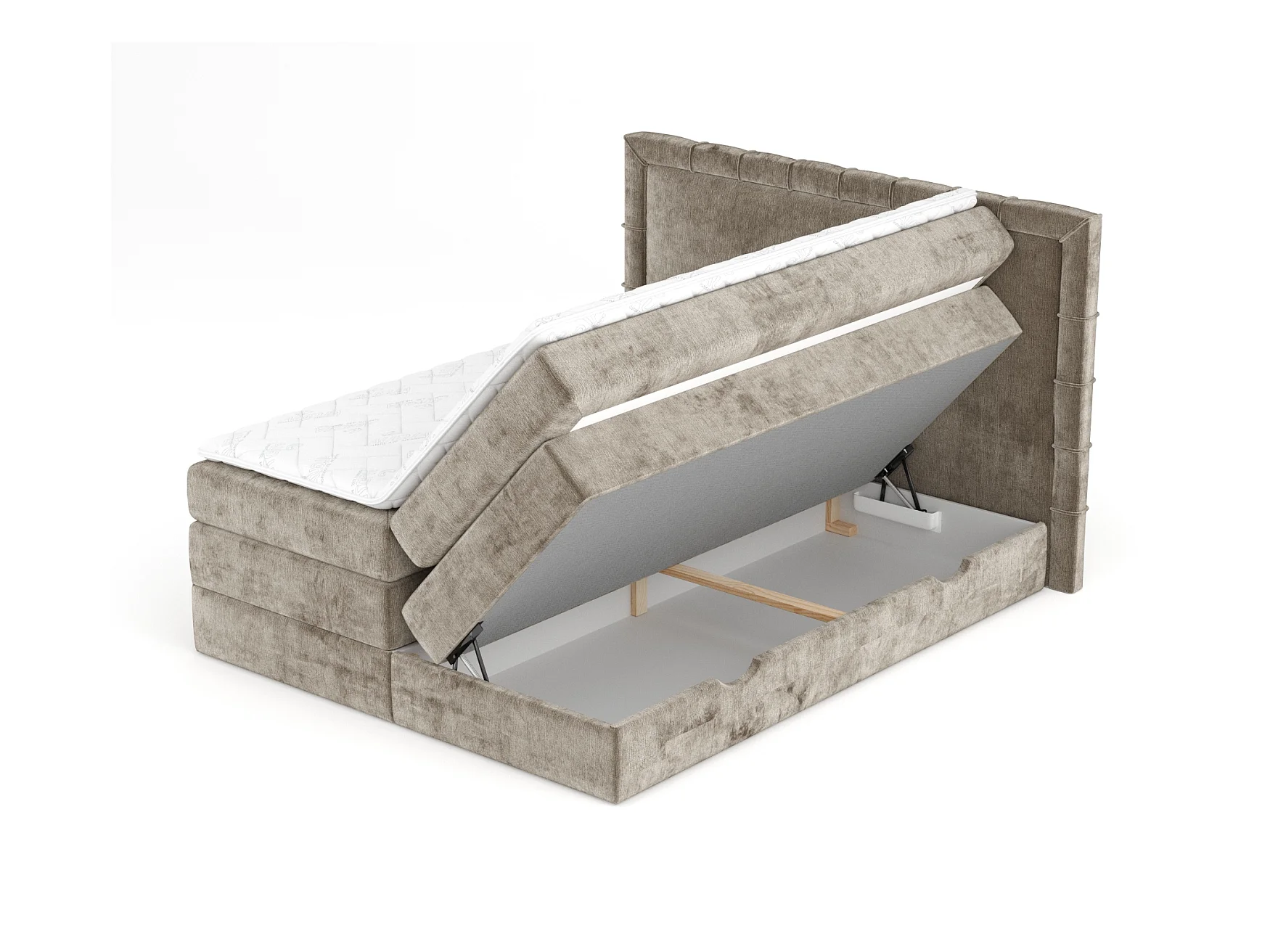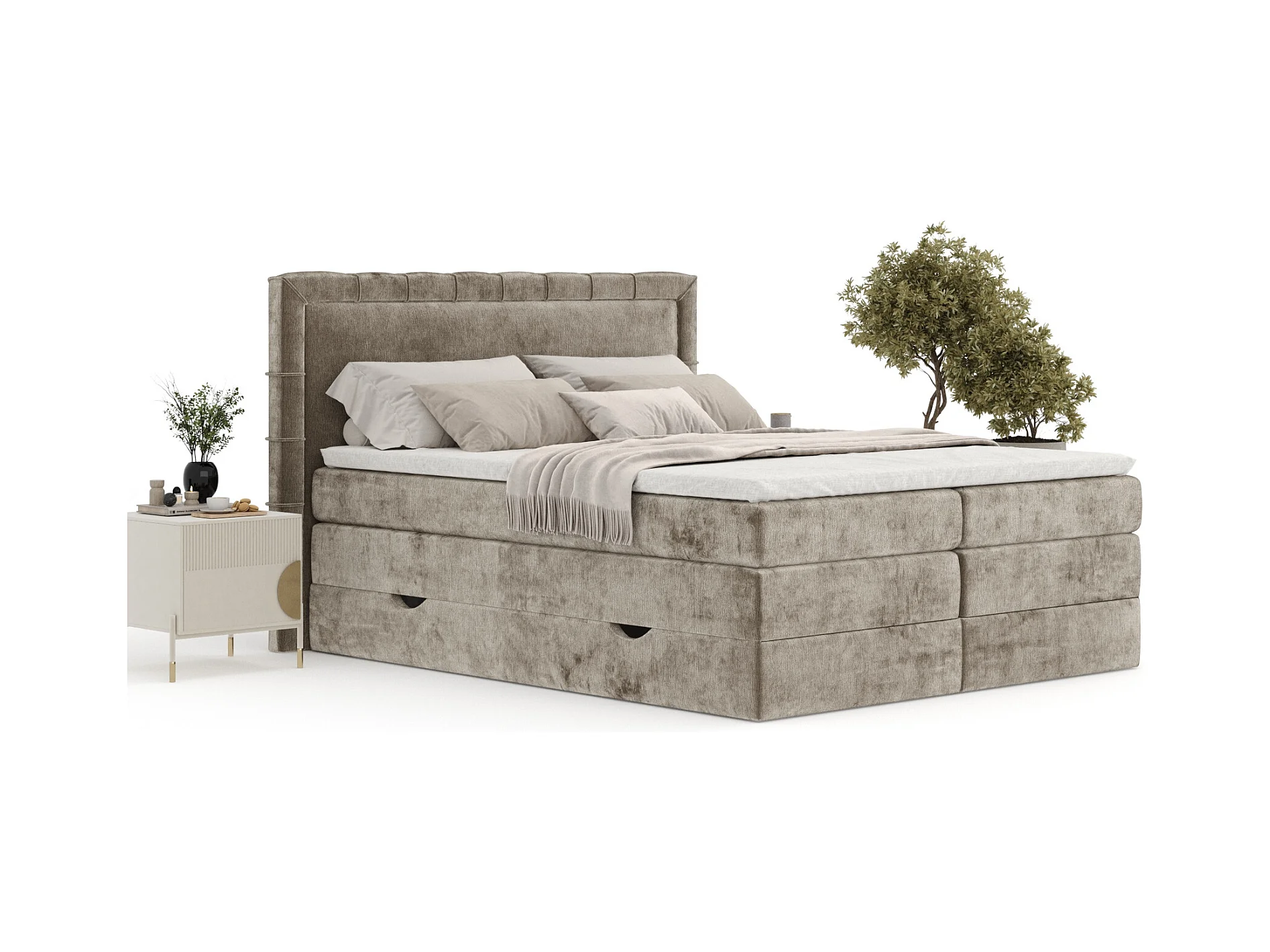 Boxspringbett im Chenille-Stoff Estelle - Matratze - Topper - 200x200 cm - beige