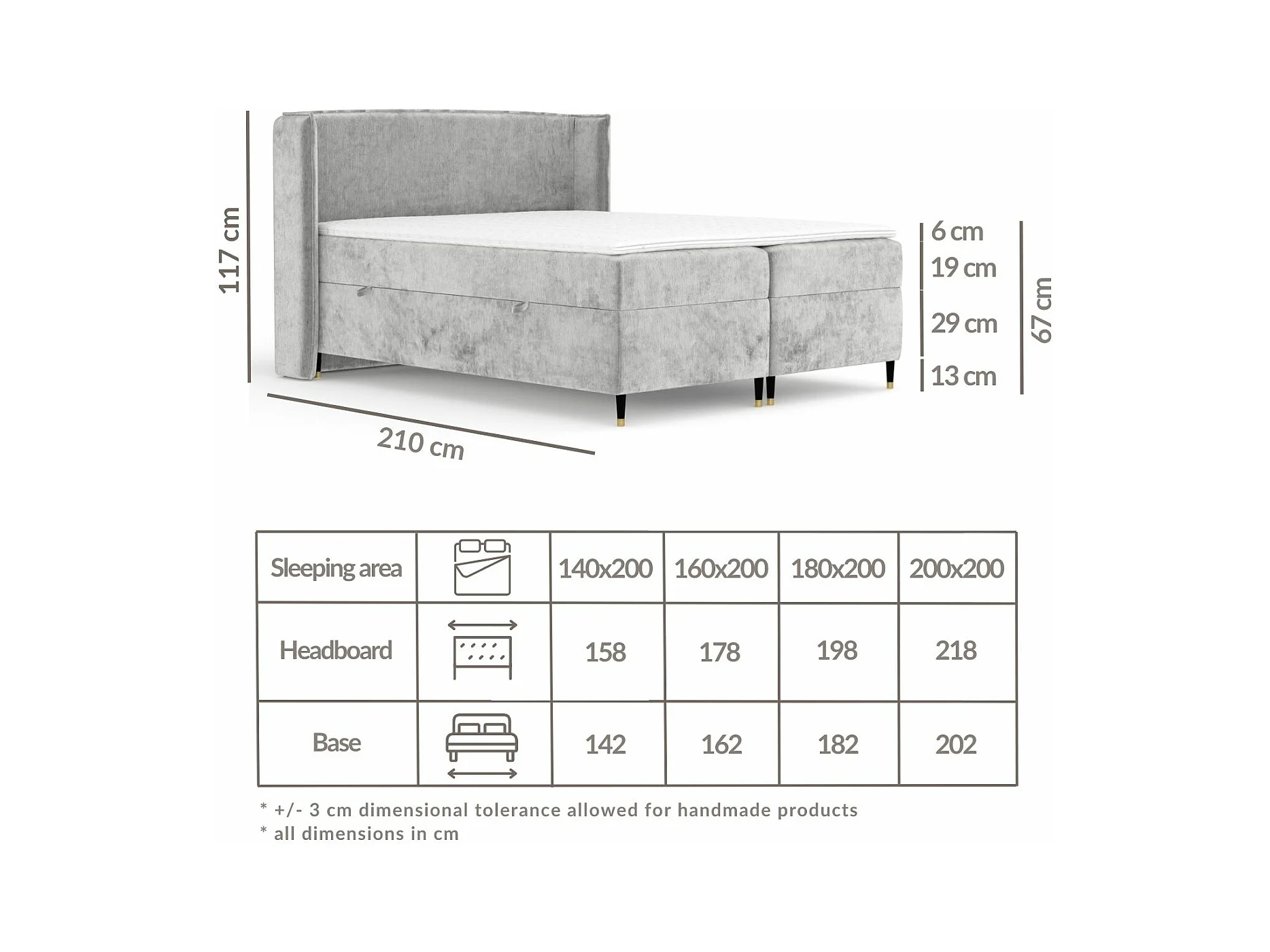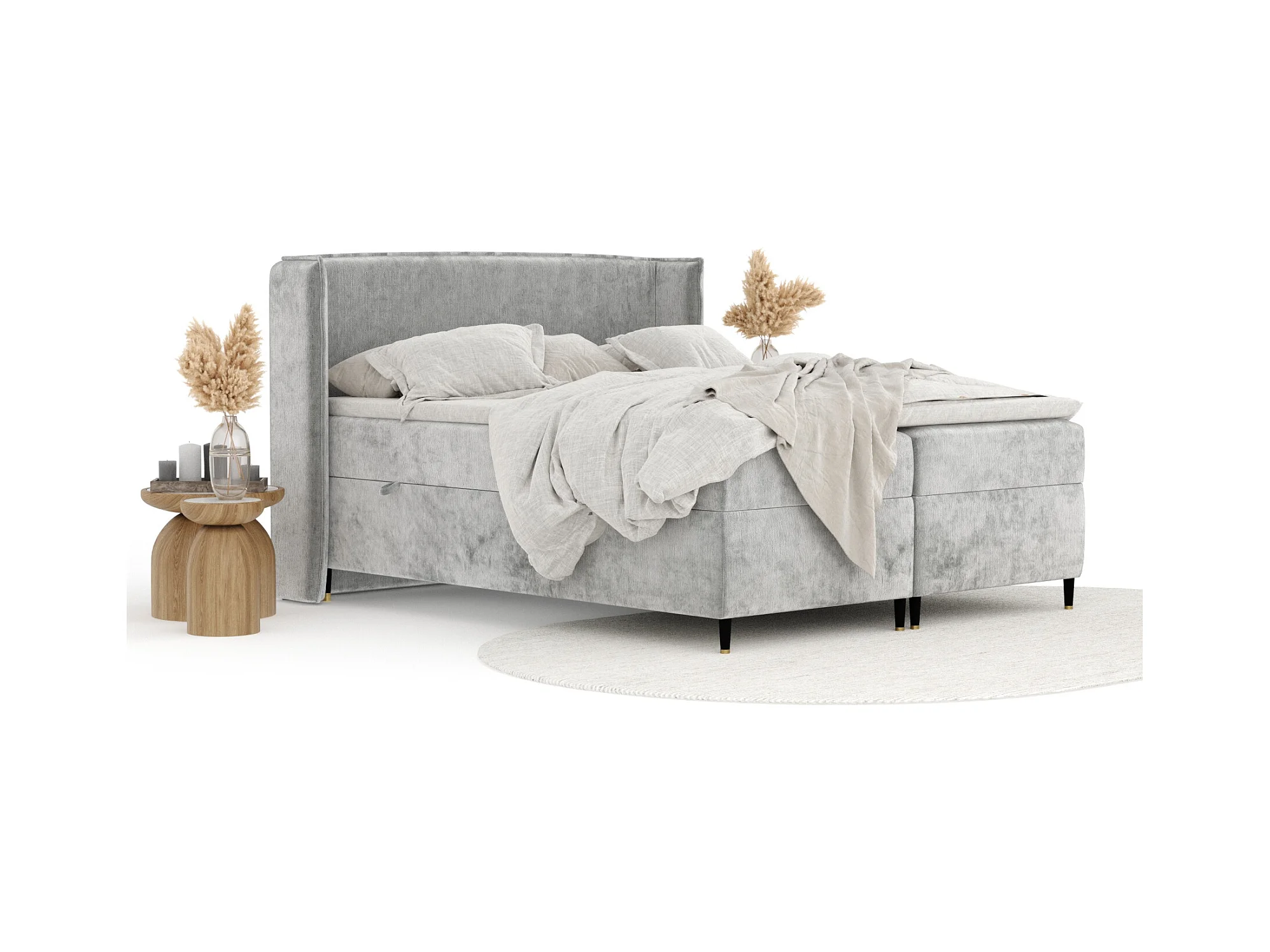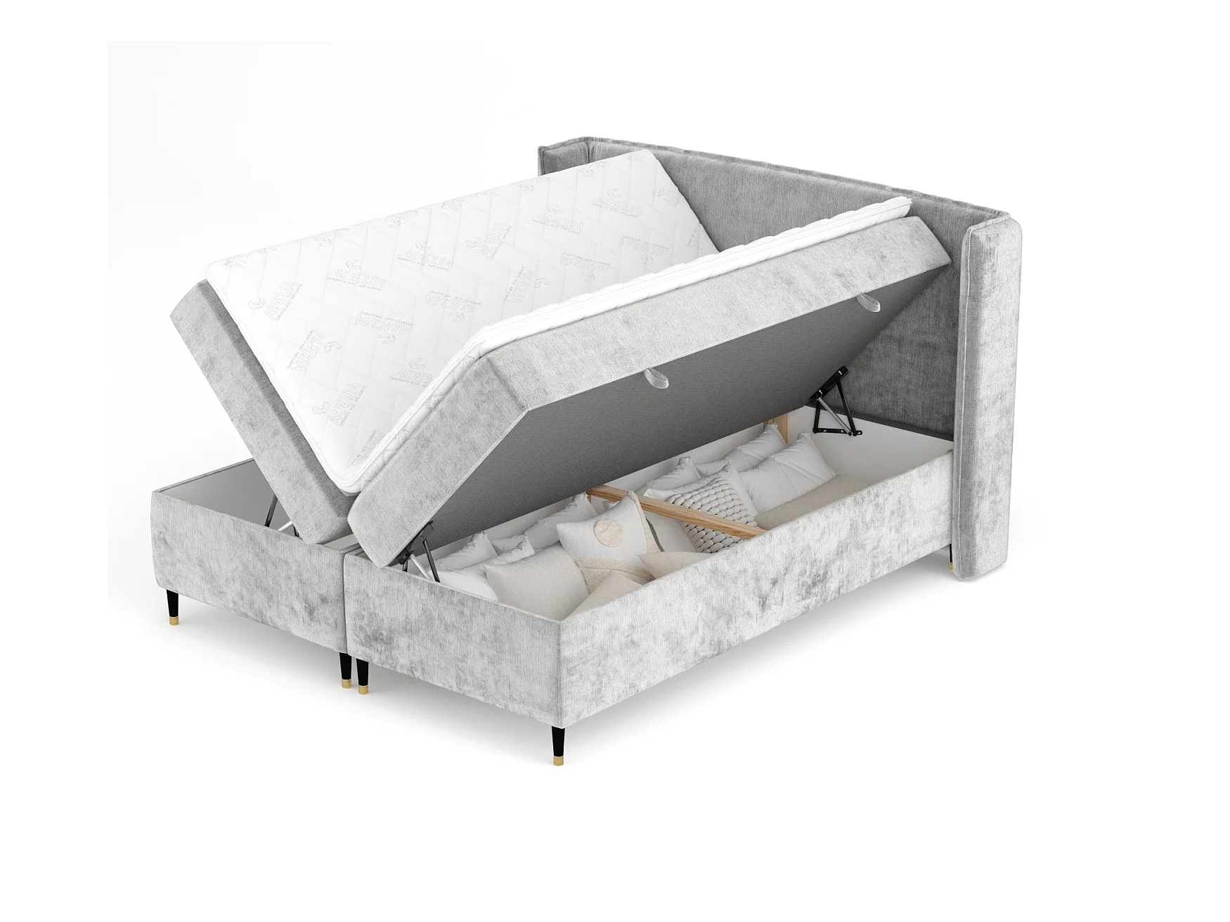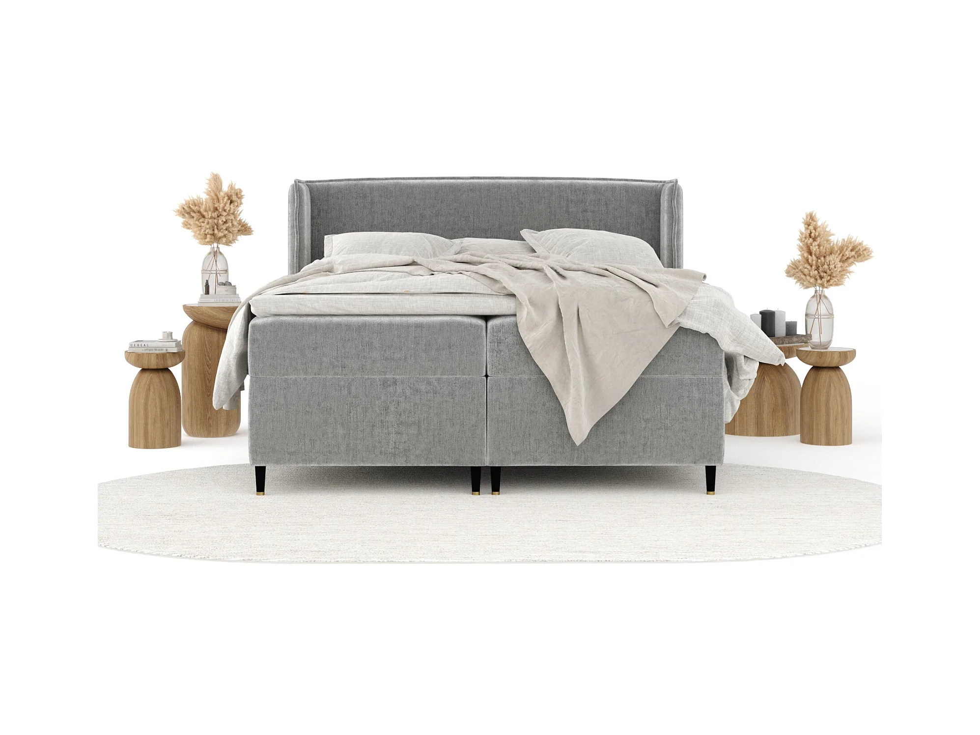 Boxspringbett aus Chenille-Stoff Passion - Matratze - Toppermatratze - 180x200 cm - hellgrau