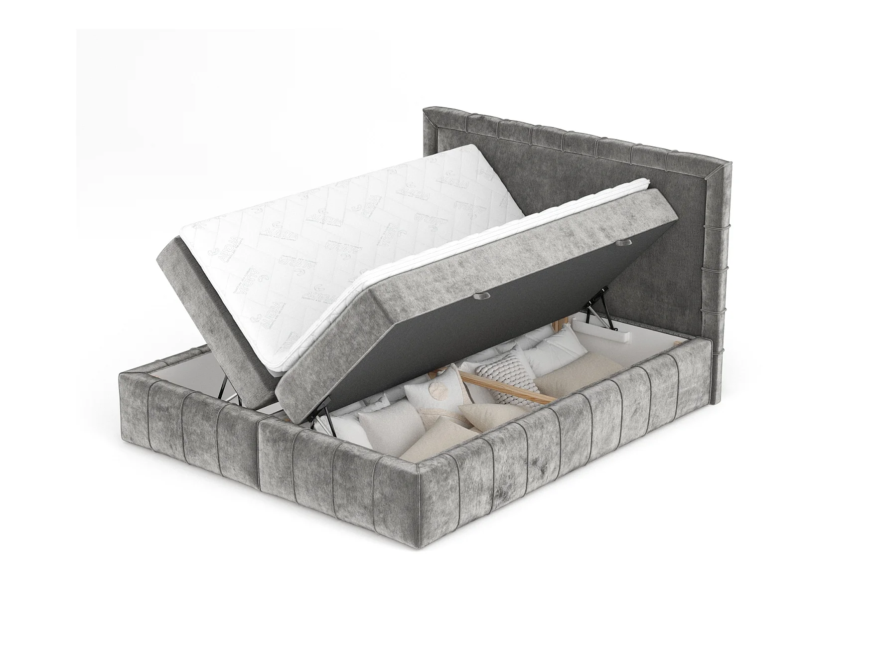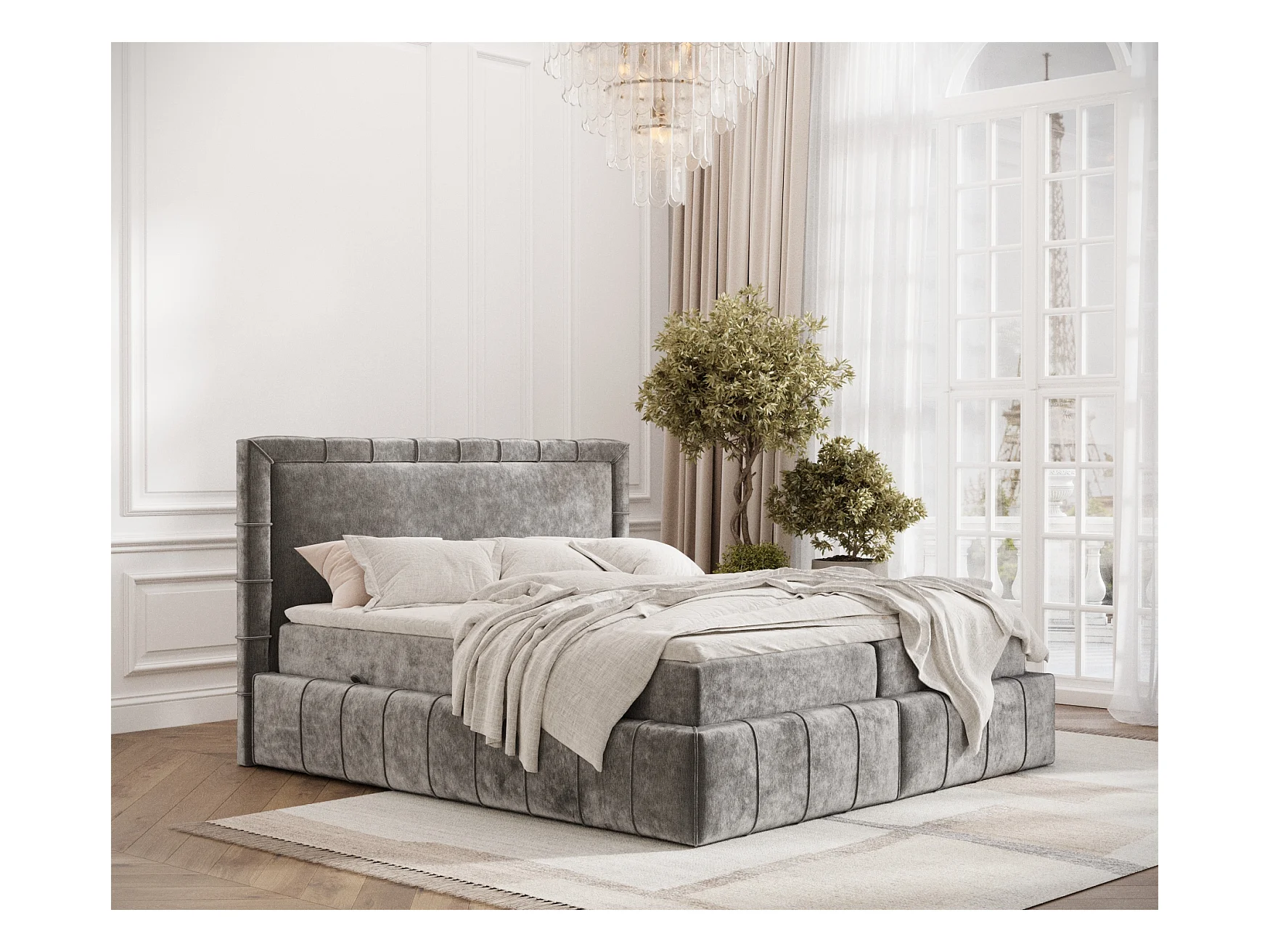 Boxspringbett aus Chenille-Stoff Passion - Matratze - Toppermatratze - 140x200 cm - grau