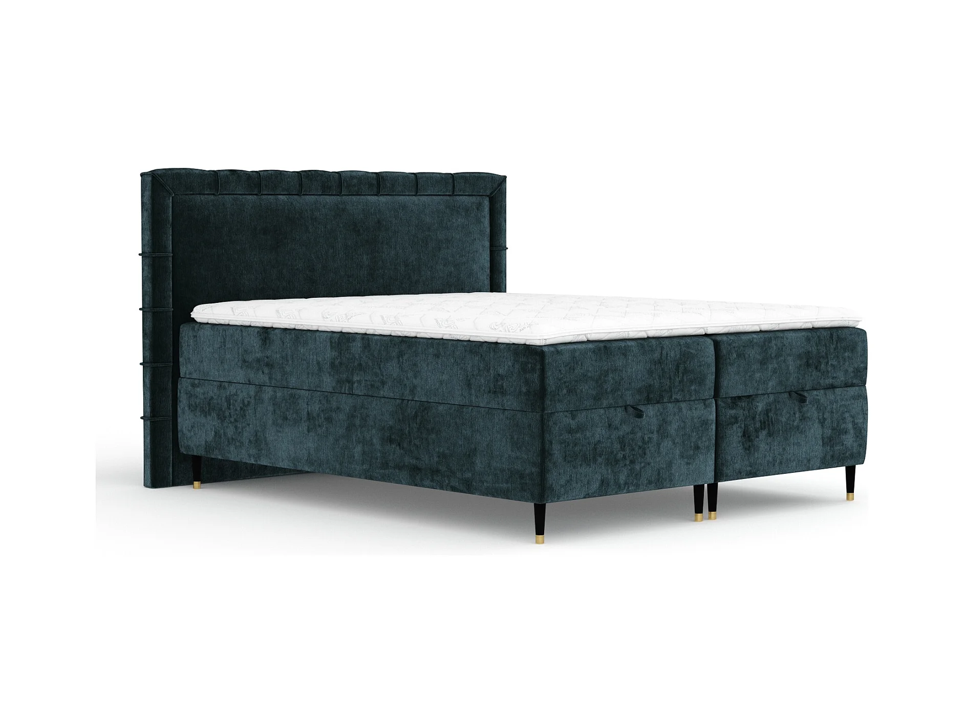Boxspringbett im Chenille-Stoff Estelle - Matratze - Topper - 200x200 cm - teal