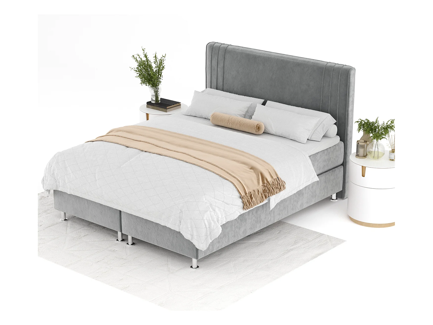 Boxspringbett aus Samtstoff Sorrento - Matratze - Toppermatratze - 200x200 cm - grau