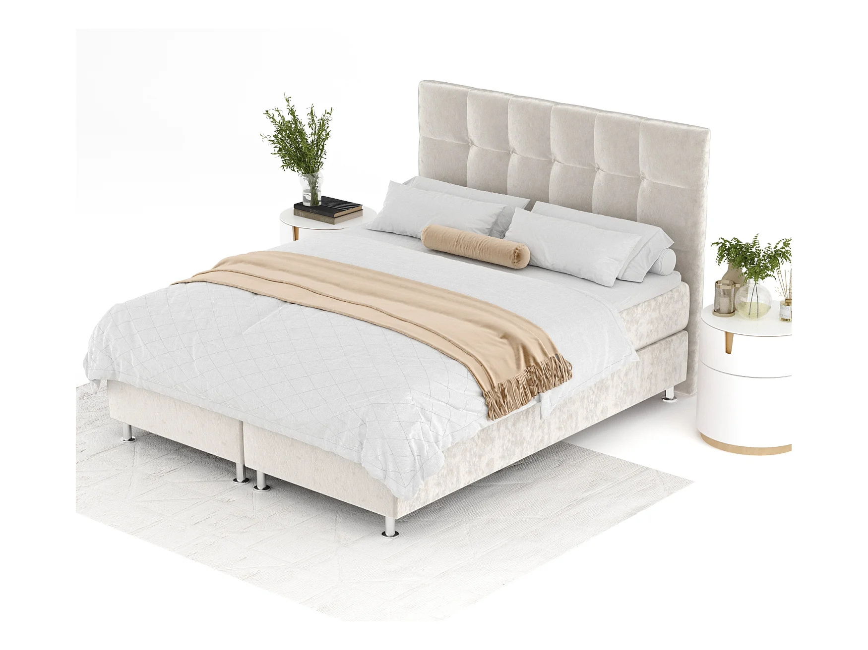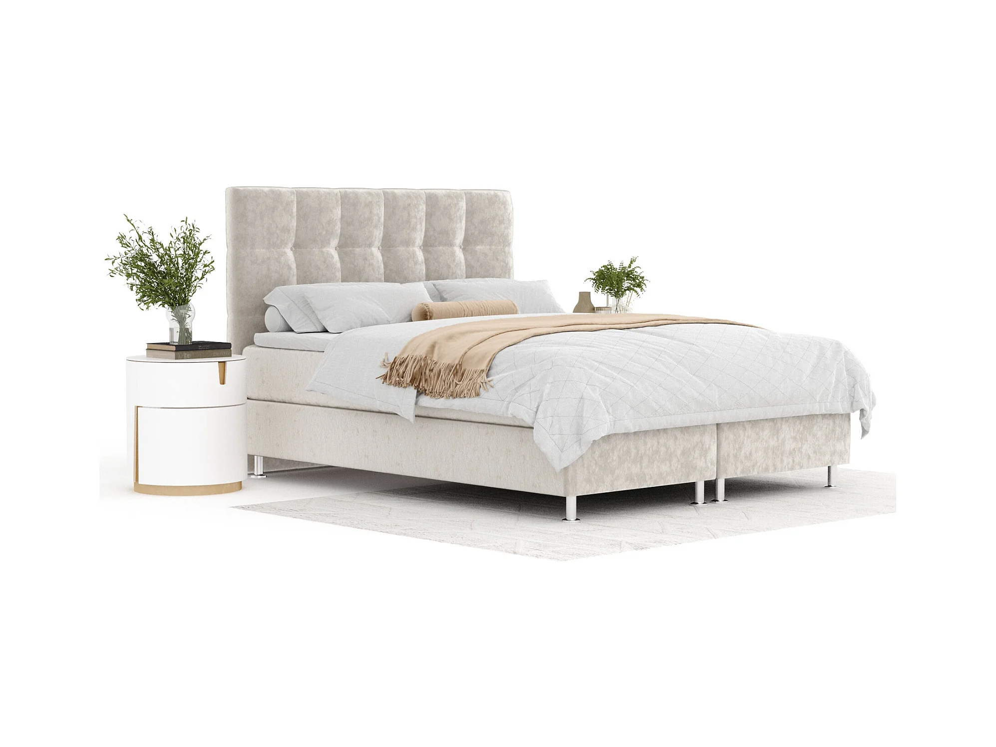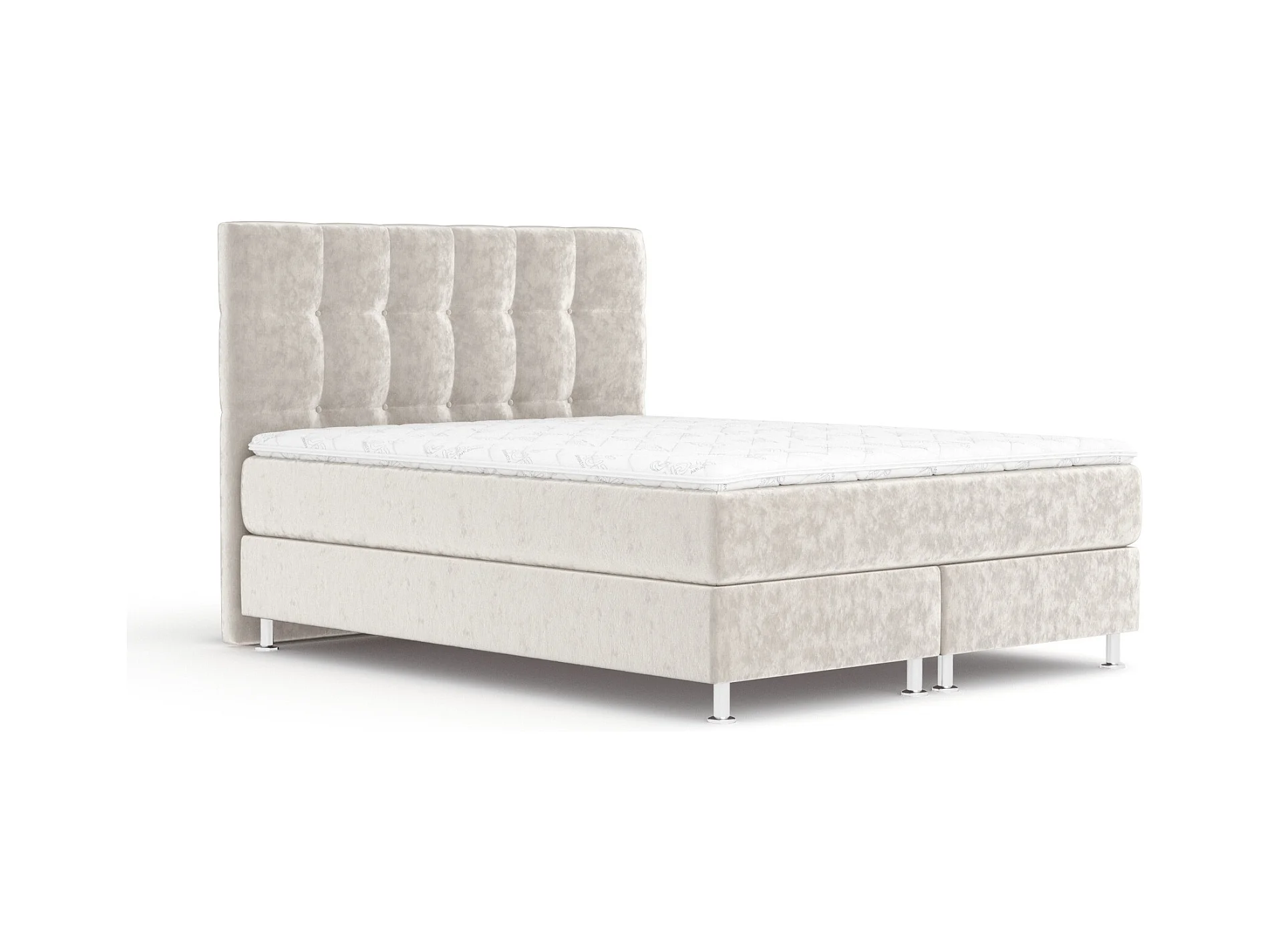Boxspringbett aus Samtstoff Sorrento - Matratze - Toppermatratze - 140x200 cm - creme