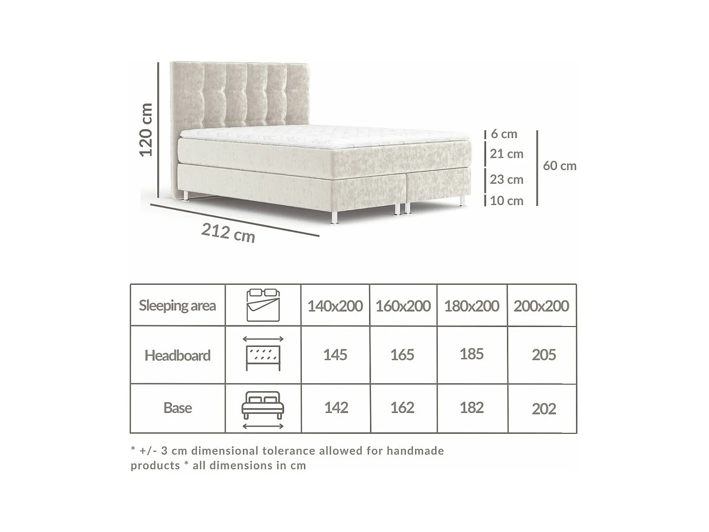 Boxspringbett aus Samtstoff Excelsior - Matratze - Toppermatratze - 140x200 cm - beige