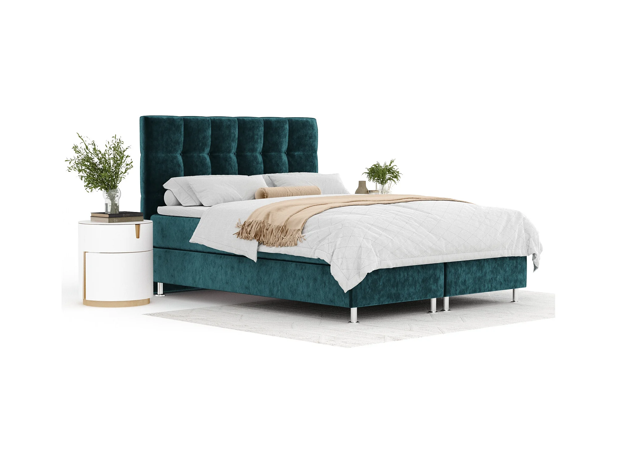 Boxspringbett aus Samtstoff Chermin - Matratze - Toppermatratze - 180x200 cm - türkisfarbe
