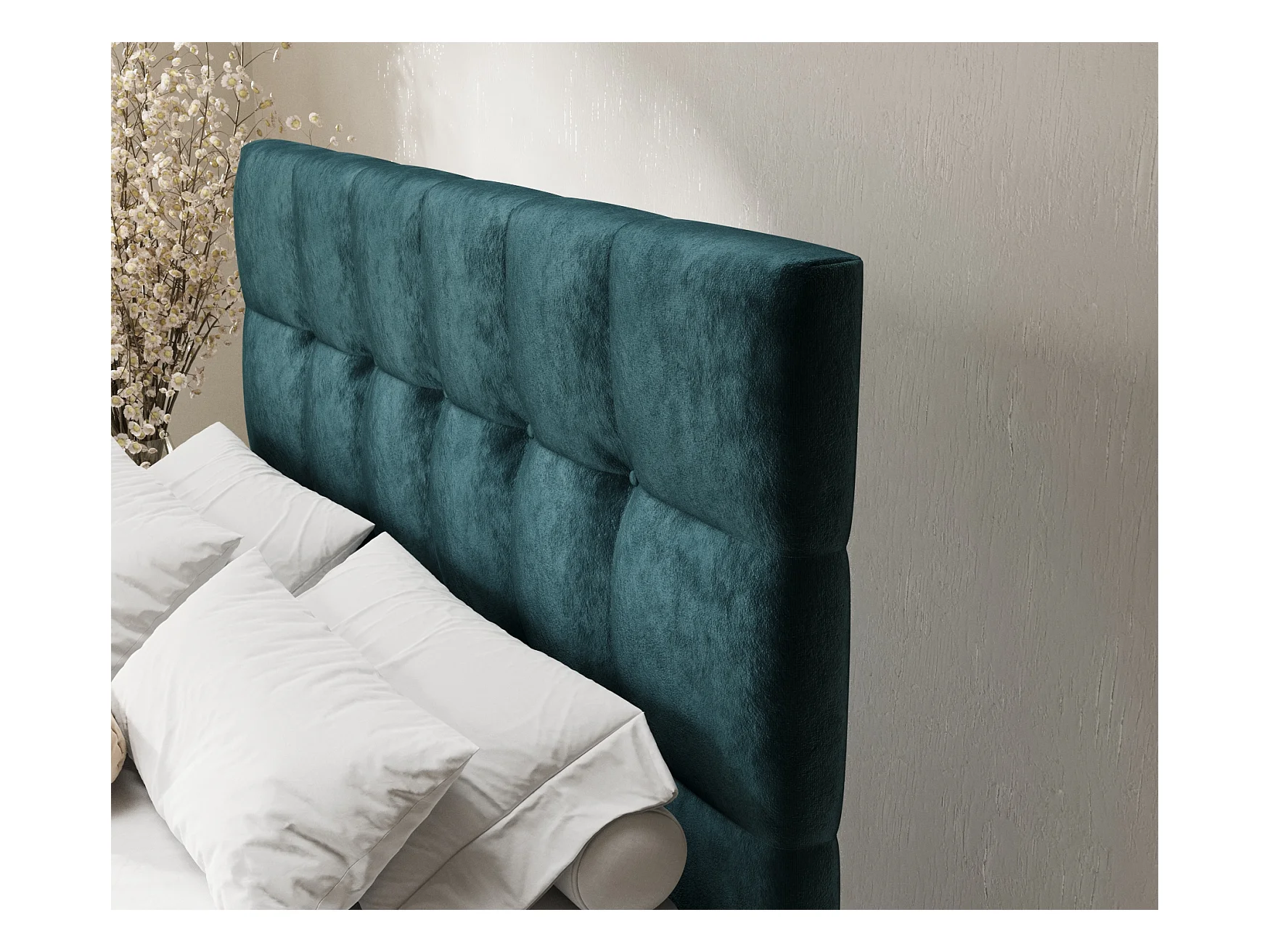 Boxspringbett aus Samtstoff Otus - Matratze - Toppermatratze - 180x200 cm - türkisfarbe