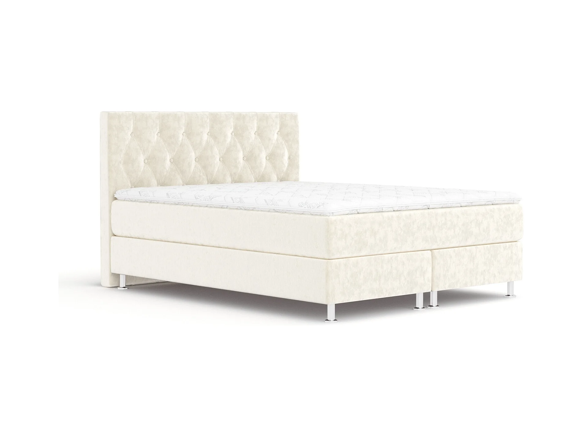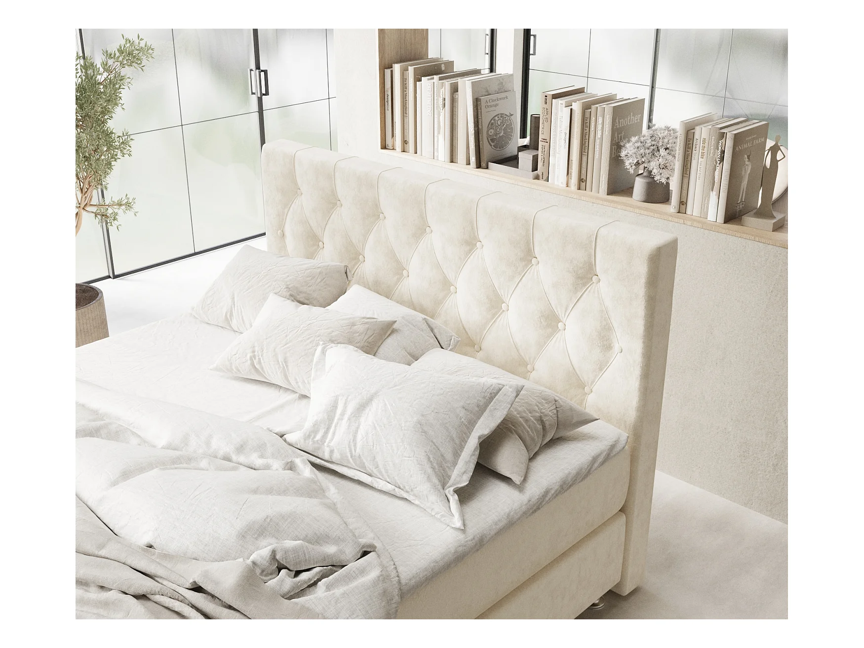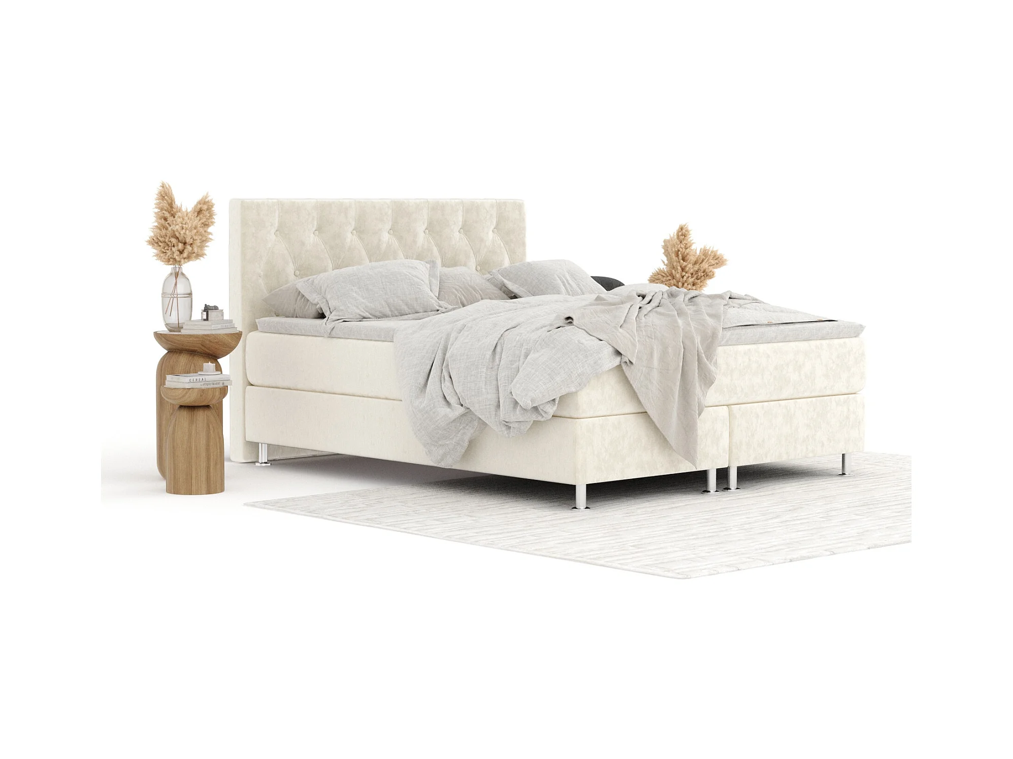 Boxspringbett aus Samtstoff Sorrento - Matratze - Toppermatratze - 140x200 cm - creme