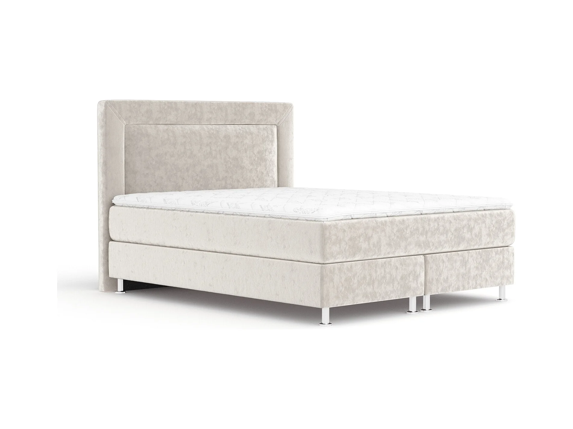 Boxspringbett aus Samtstoff Sorrento - Matratze - Toppermatratze - 140x200 cm - hellbeige