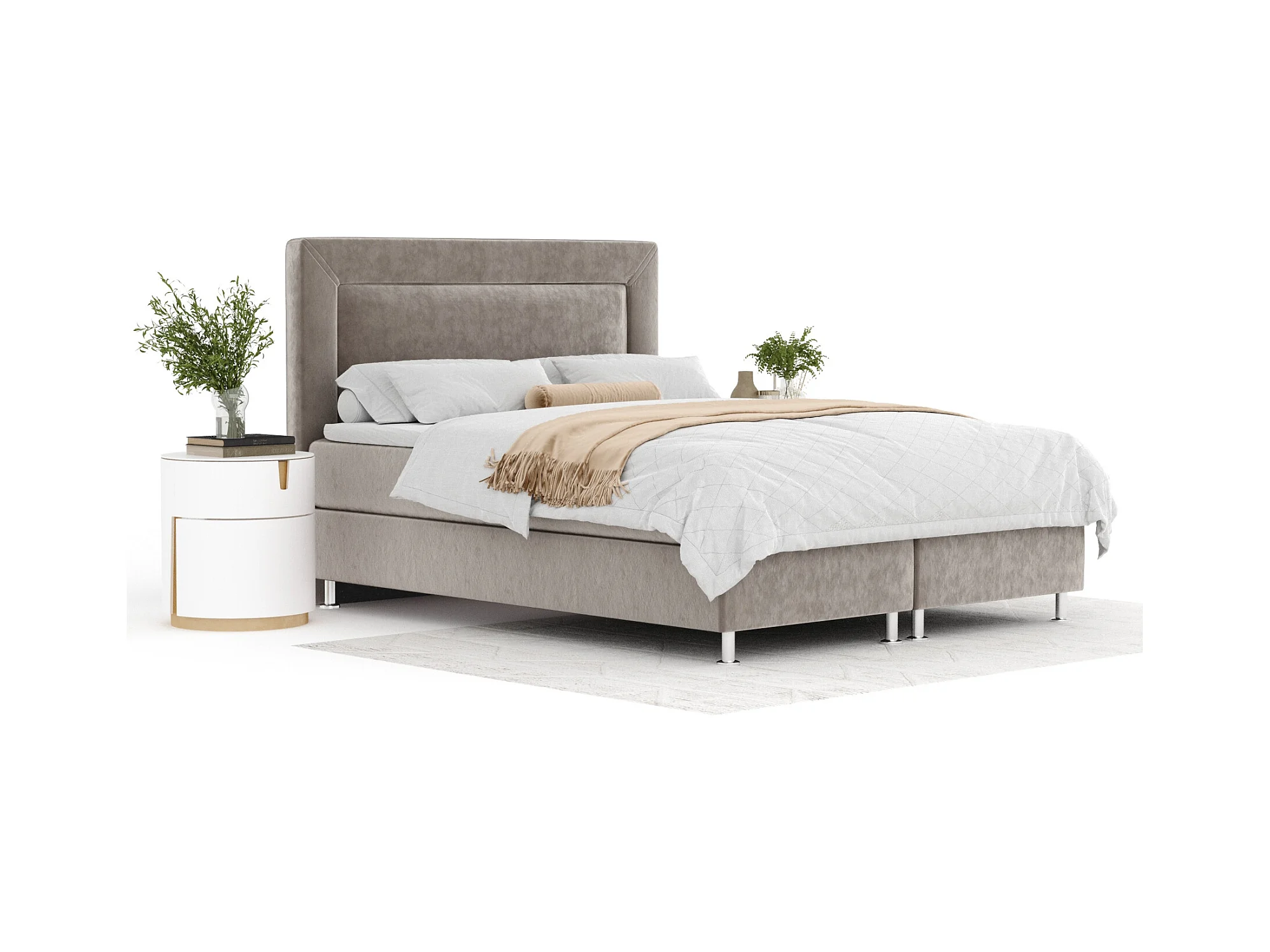 Boxspringbett aus Samtstoff Chanton - Matratze - Toppermatratze - 140x200 cm - taupe