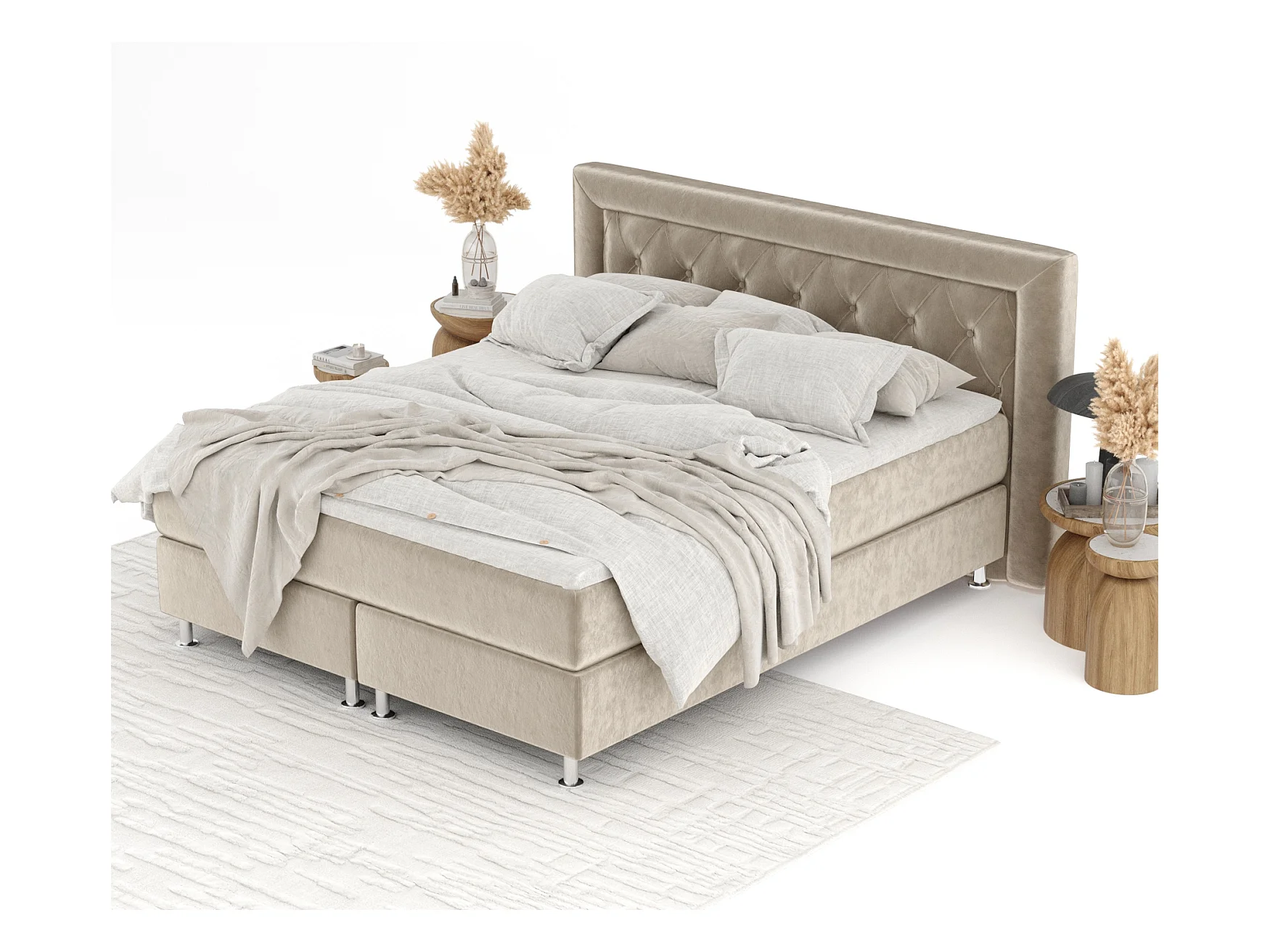 Boxspringbett aus Samtstoff Excelsior - Matratze - Toppermatratze - 180x200 cm - beige