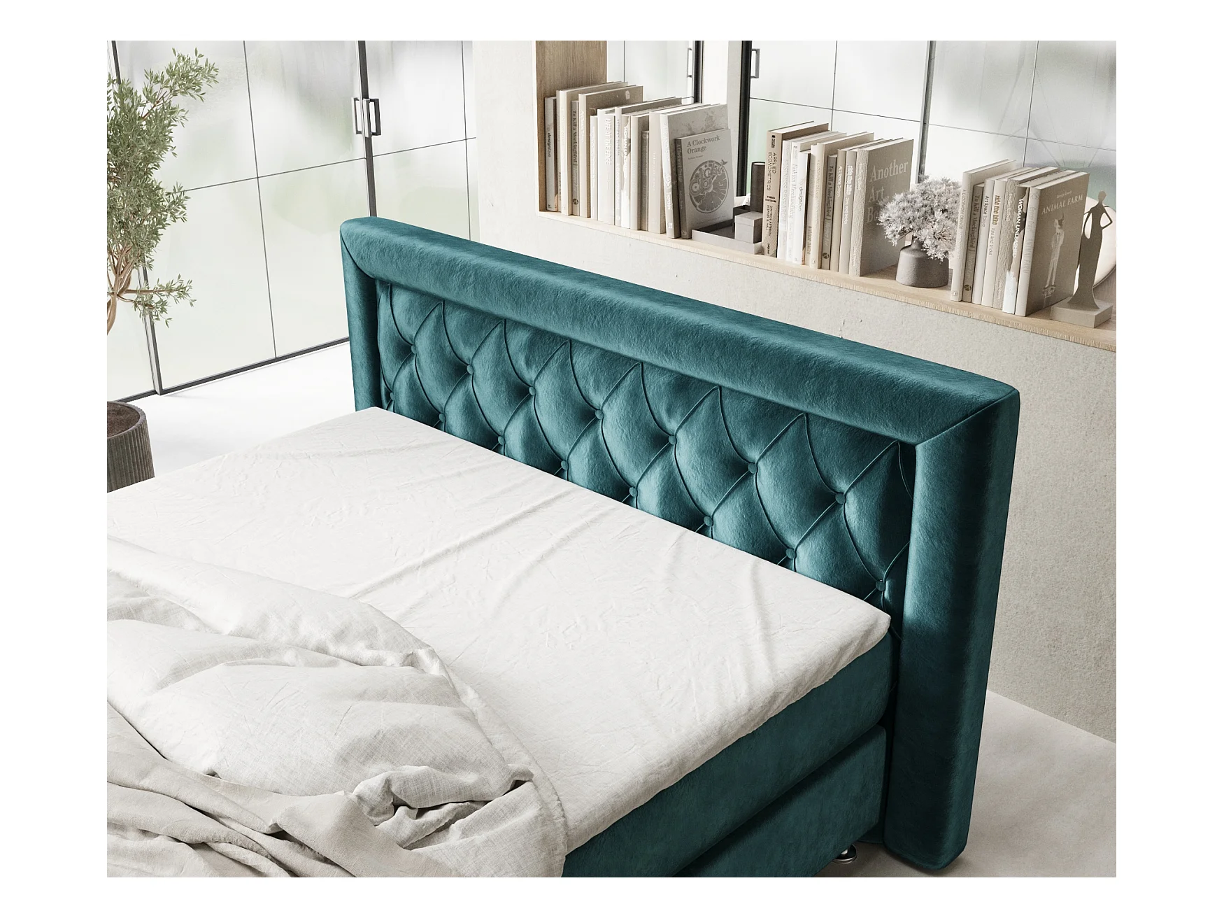Boxspringbett aus Samtstoff Sorrento - Matratze - Toppermatratze - 180x200 cm - türkisfarbe