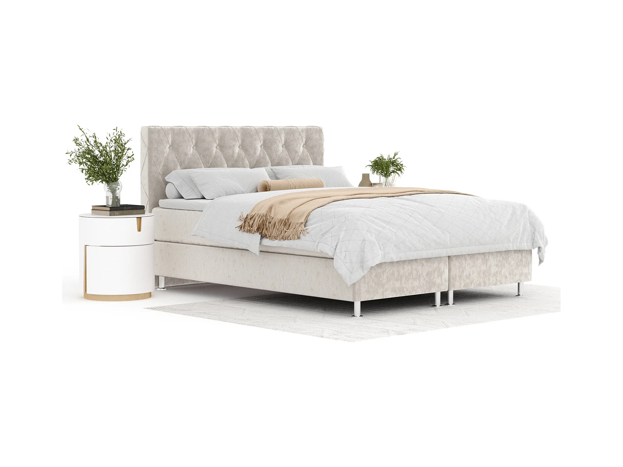 Boxspringbett aus Samtstoff Sorrento - Matratze - Toppermatratze - 180x200 cm - beige