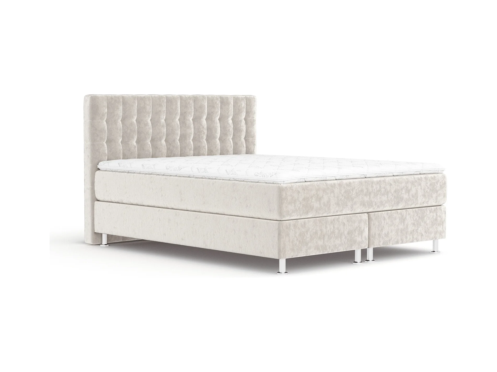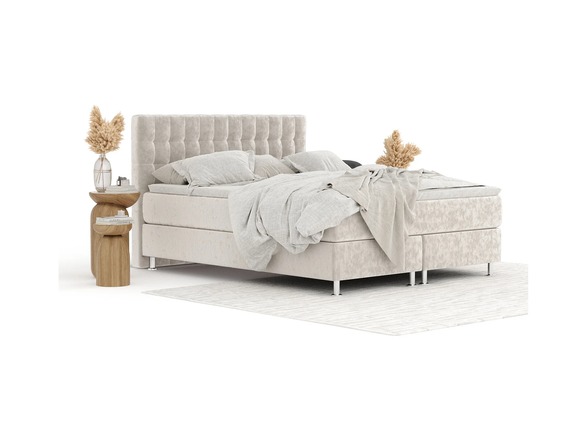 Boxspringbett aus Samtstoff Sorrento - Matratze - Toppermatratze - 140x200 cm - hellbeige