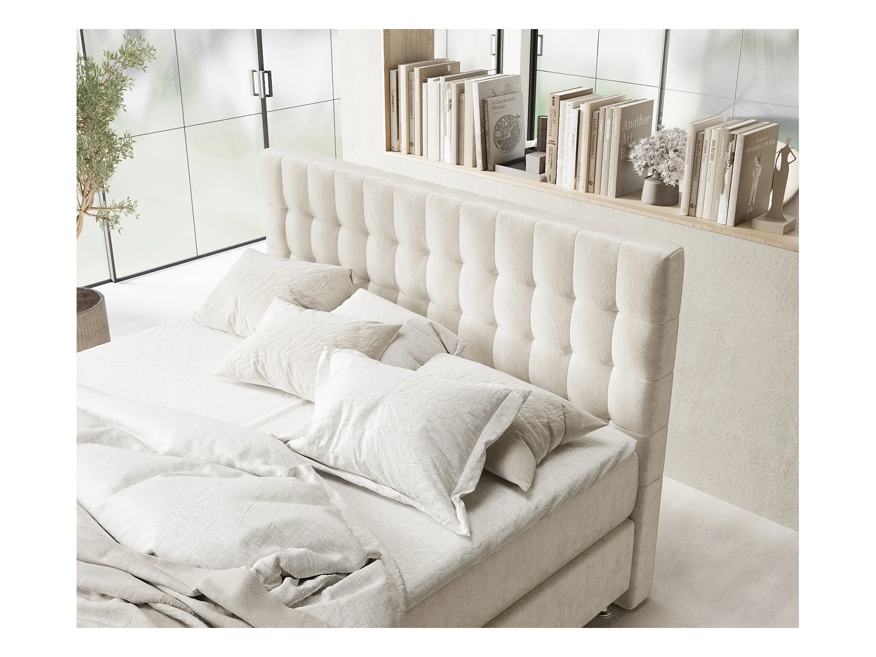 Boxspringbett aus Samtstoff Chermin - Matratze - Toppermatratze - 140x200 cm - creme