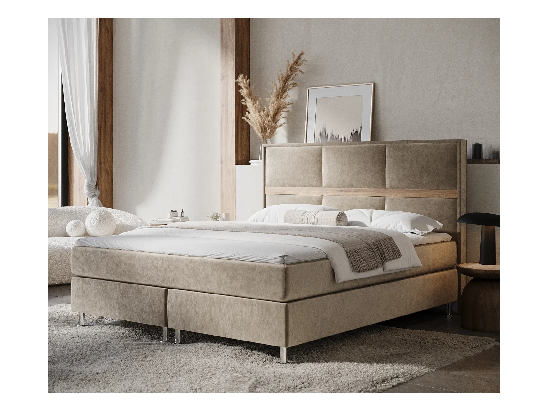 Boxspringbett aus Samtstoff Sorrento - Matratze - Toppermatratze - 180x200 cm - beige