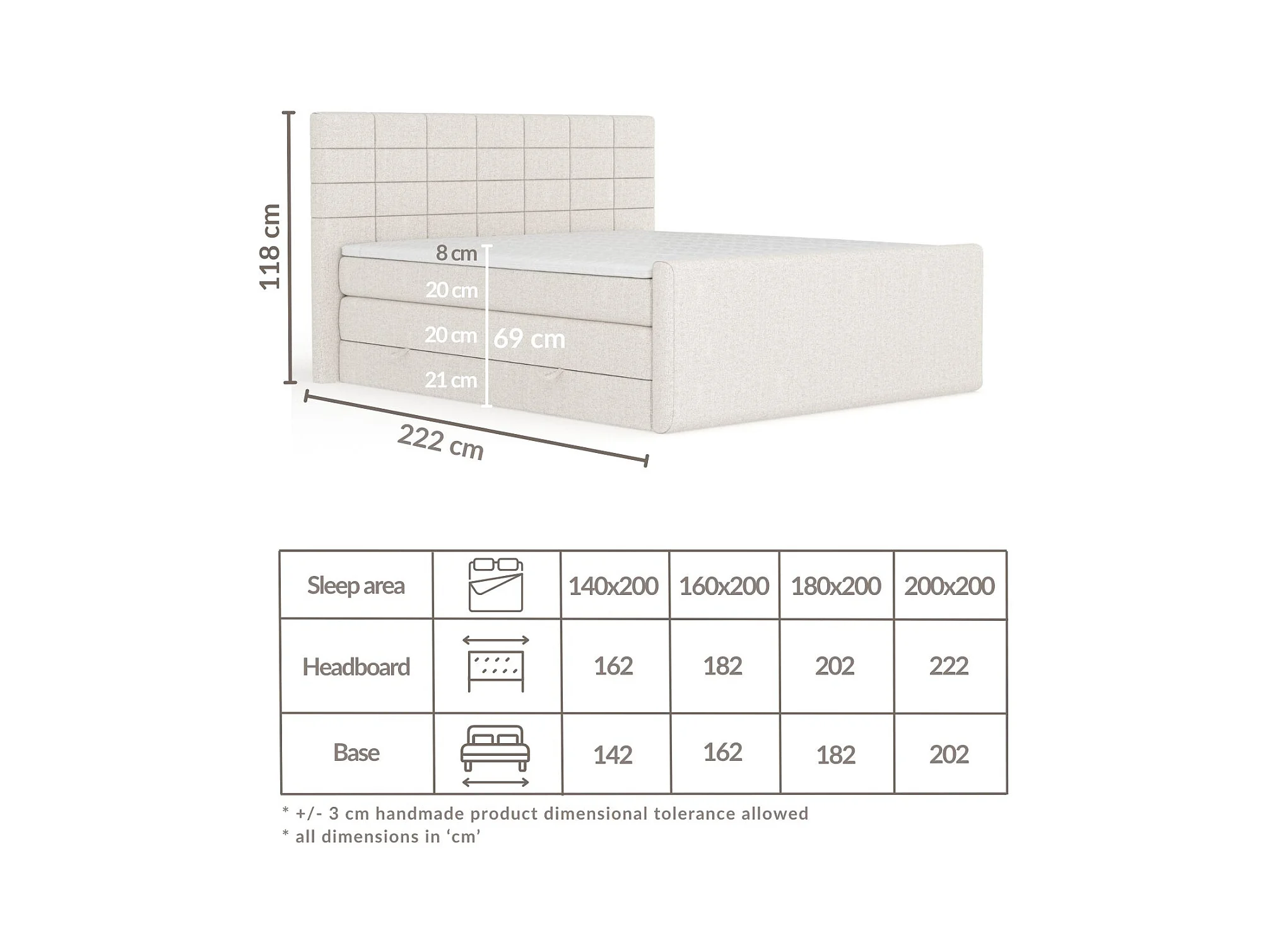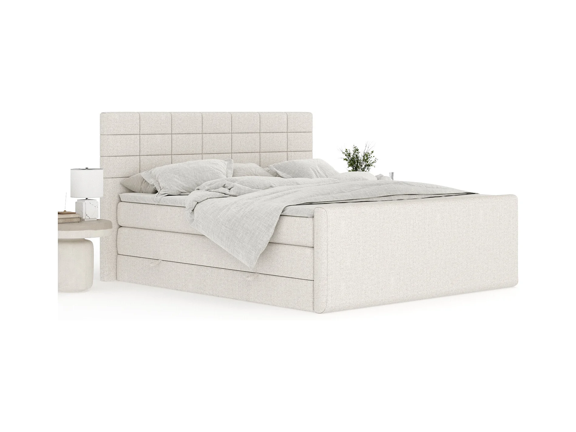 Boxspringbett aus Webstoff Ava - Matratze - Toppermatratze - 140x200 cm - beige