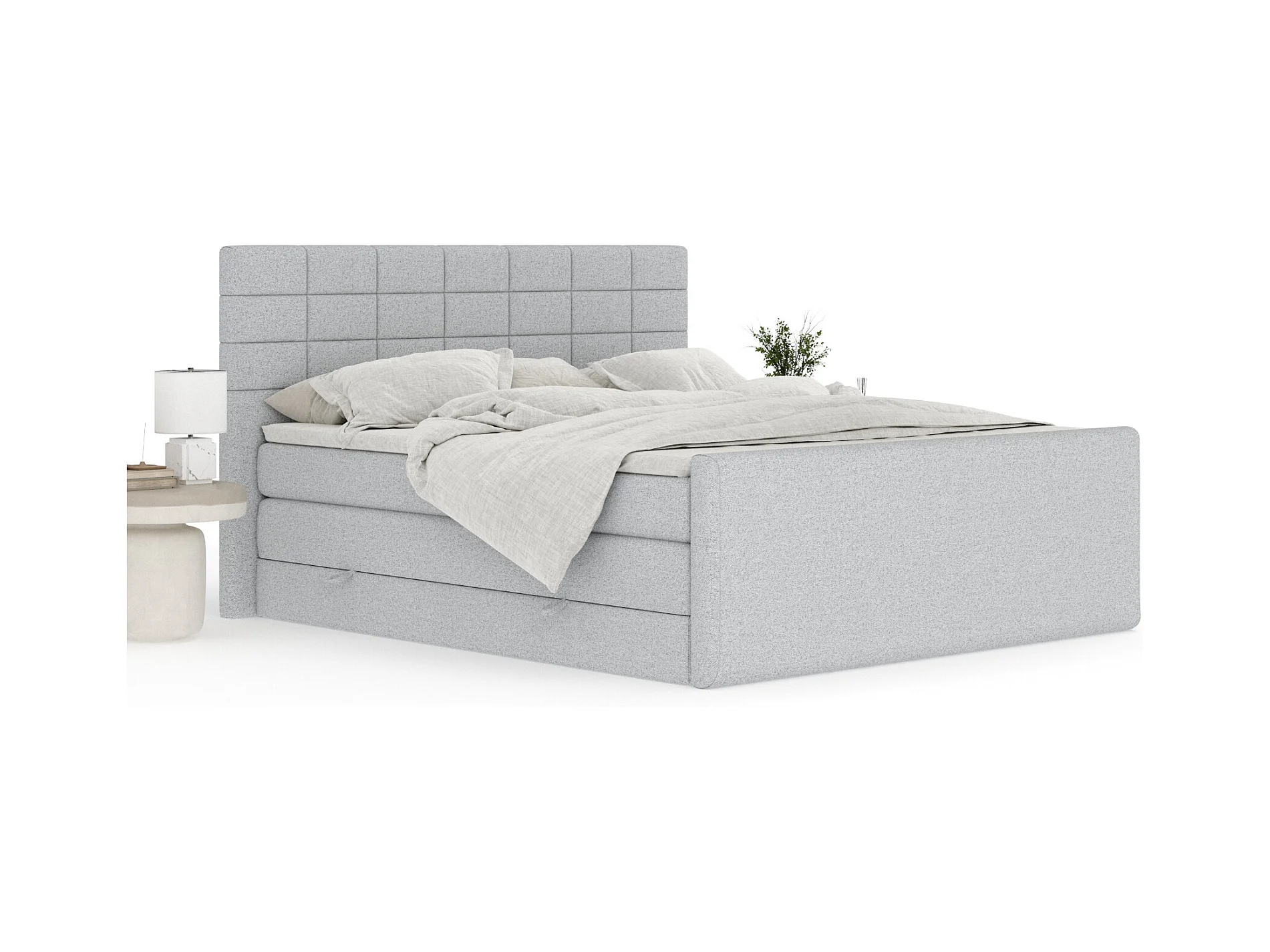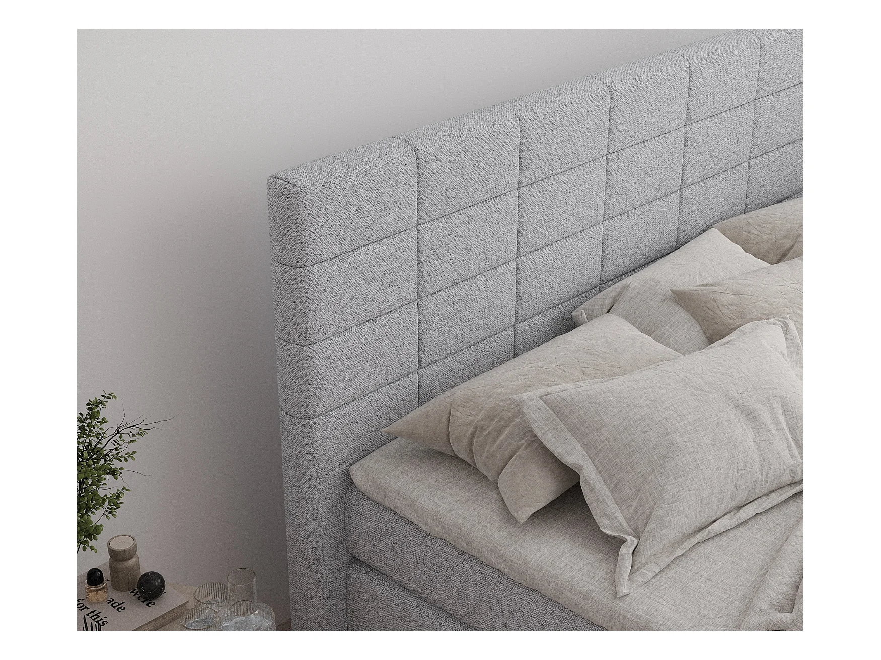 Boxspringbett aus Webstoff Ava - Matratze - Toppermatratze - 140x200 cm - hellgrau
