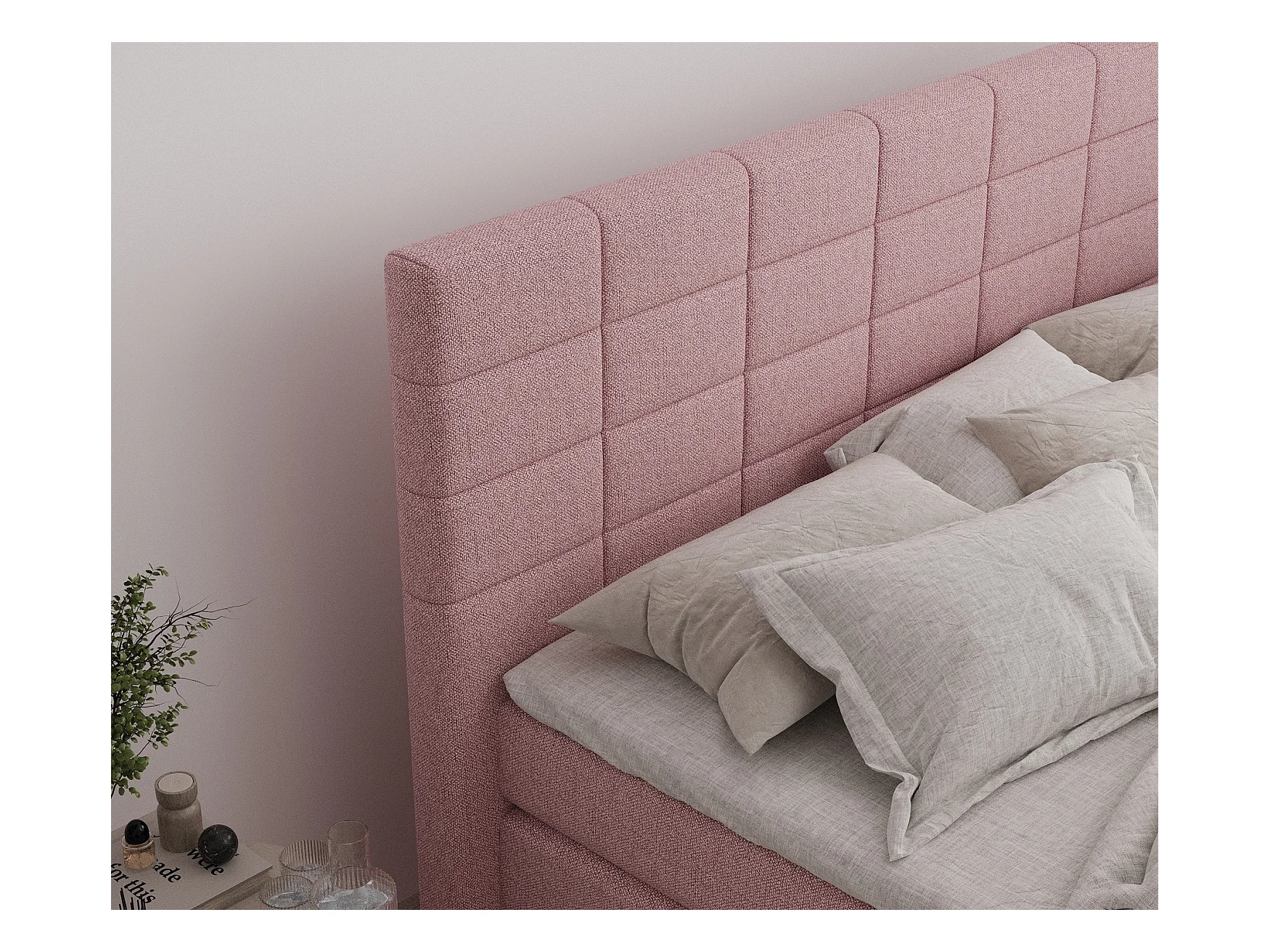 Boxspringbett aus Webstoff Ava - Matratze - Toppermatratze - 140x200 cm - rosa
