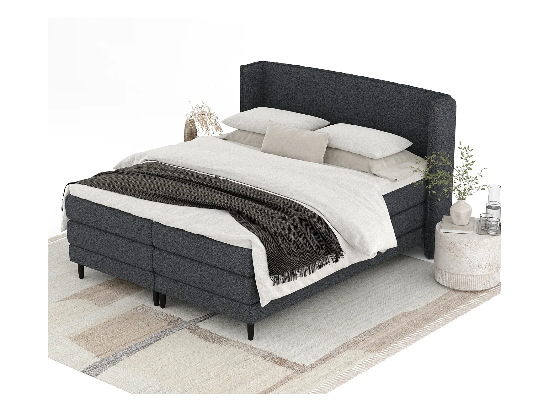 Boxspringbett aus Webstoff Ardis - Matratze - Toppermatratze - 140x200 cm - schwarz