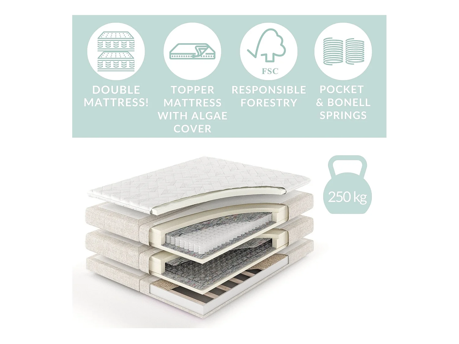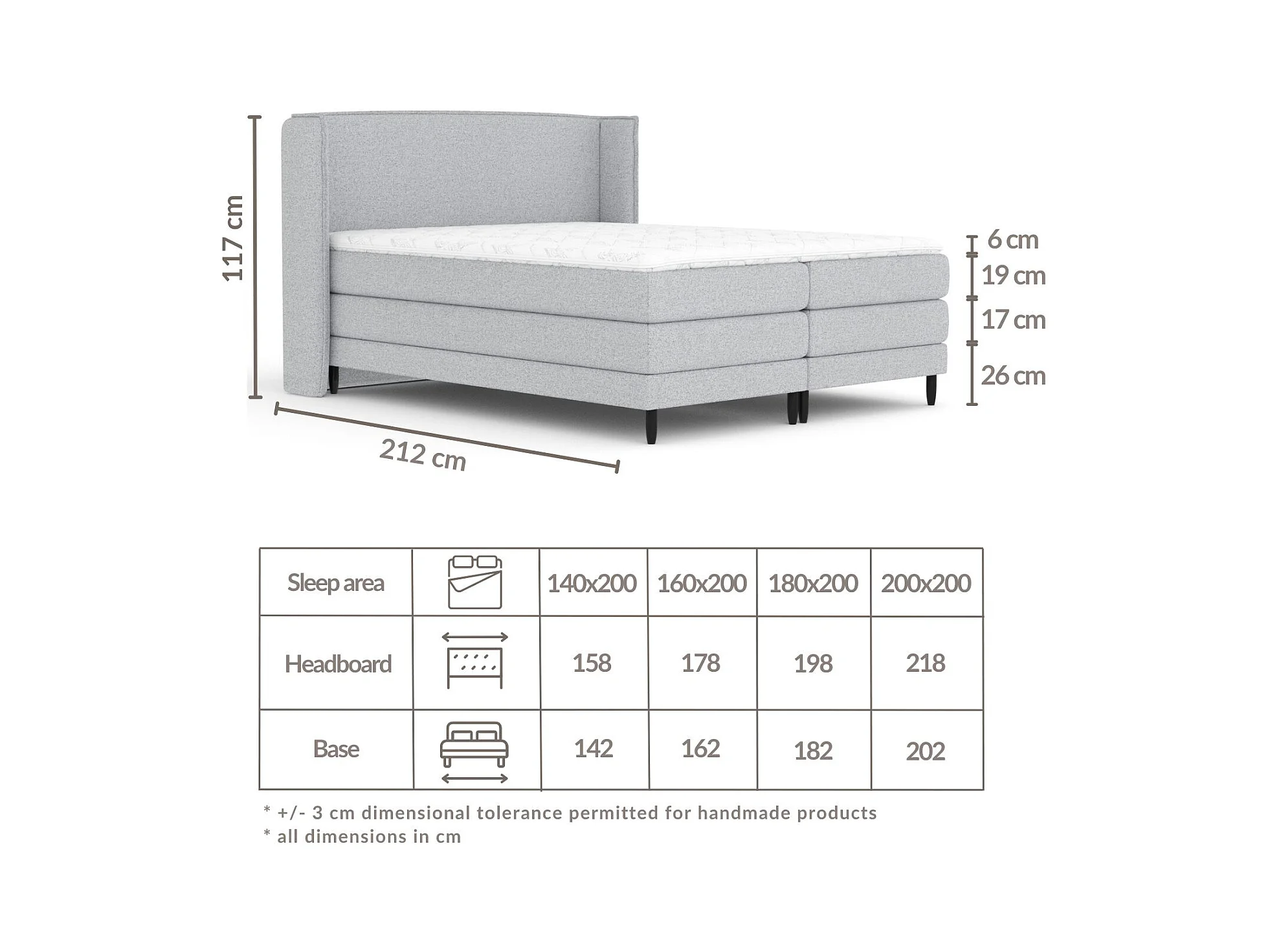Boxspringbett aus Webstoff Passion - Matratze - Toppermatratze - 140x200 cm - schwarz