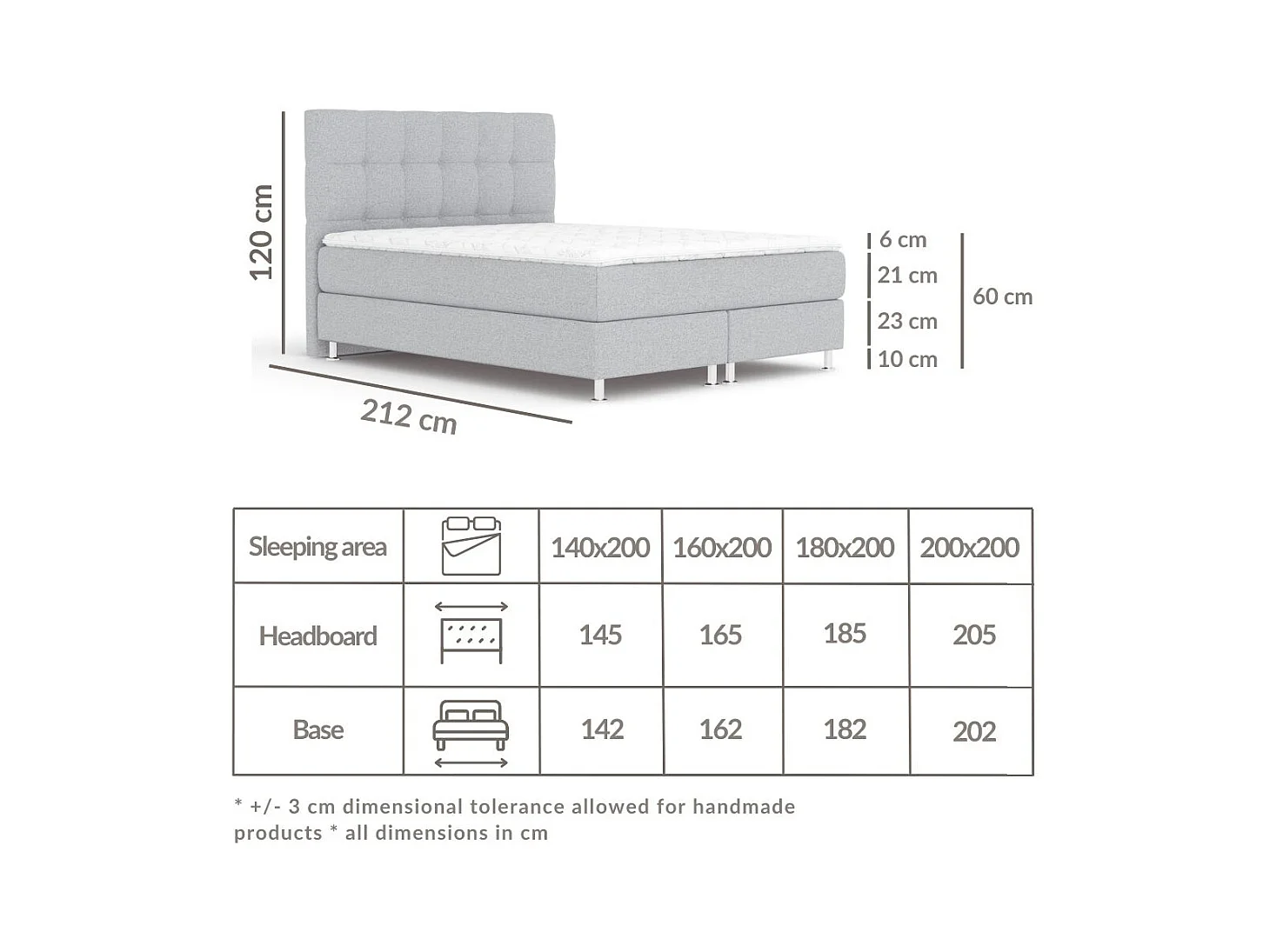 Boxspringbett aus Webstoff Salvi - Matratze - Toppermatratze - 200x200 cm - schwarz