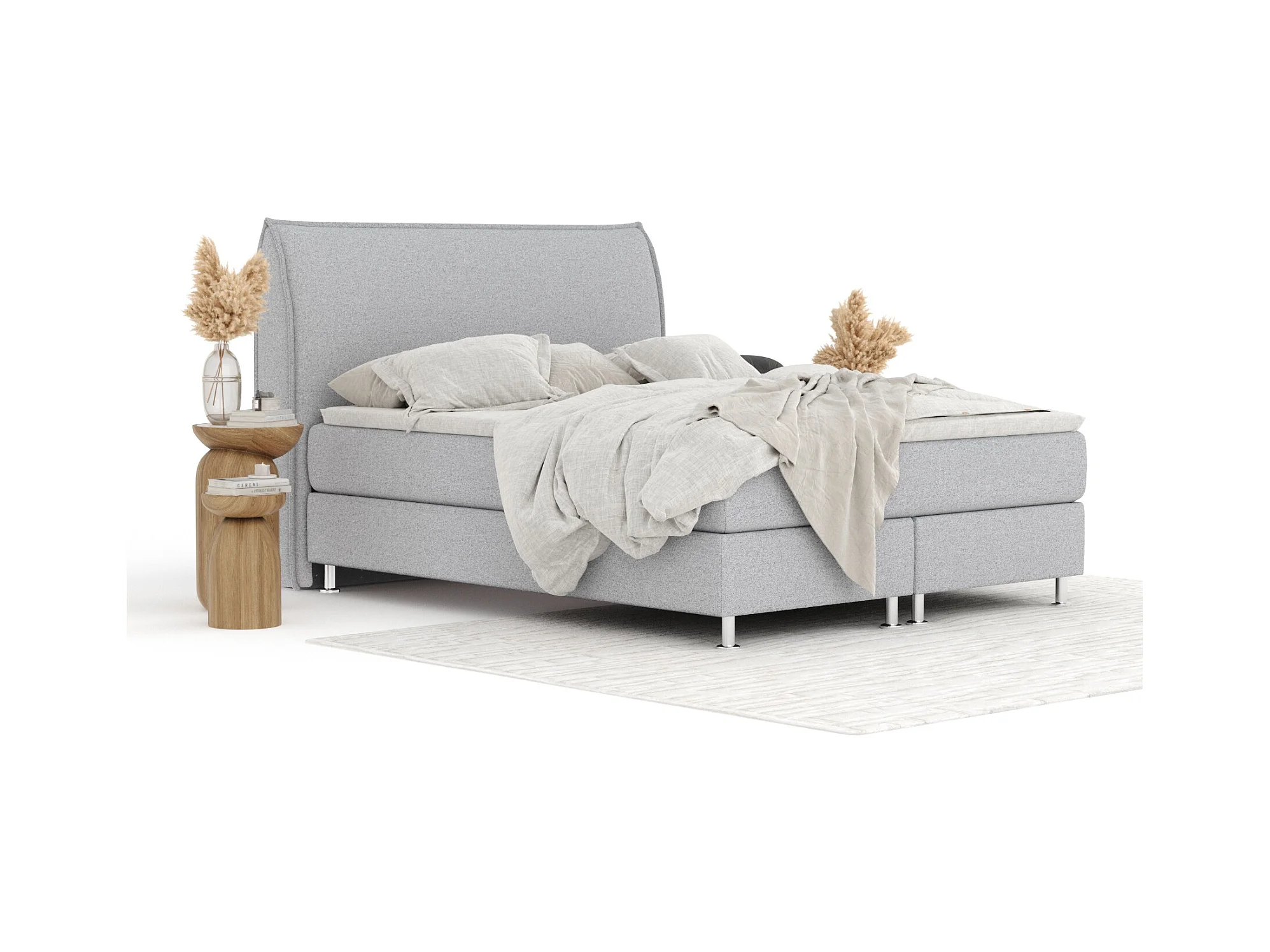 Boxspringbett aus Webstoff Casone - Matratze - Topper - 180x200 cm - hellgrau