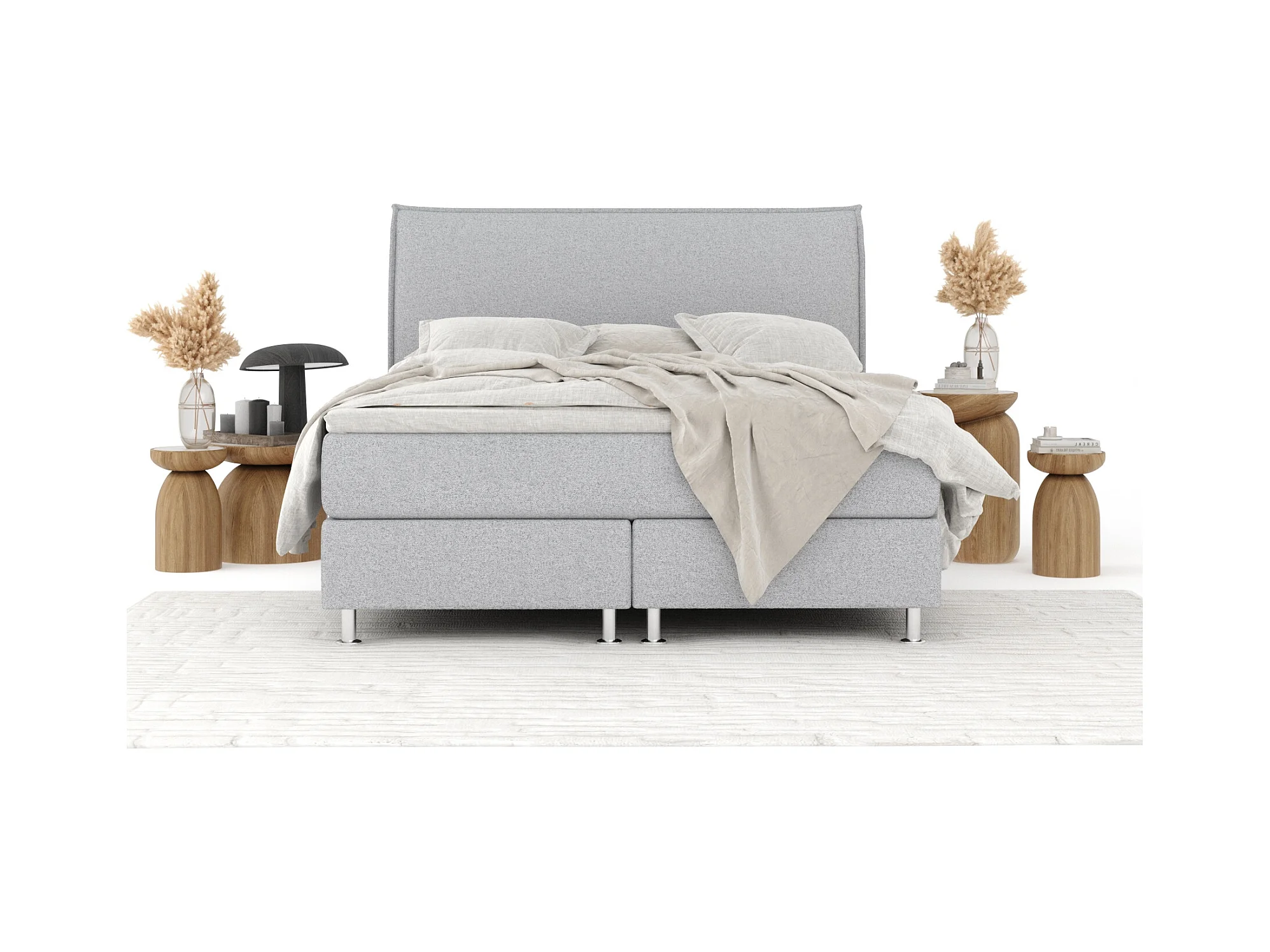 Boxspringbett aus Webstoff Chermin - Matratze - Toppermatratze - 180x200 cm - hellgrau
