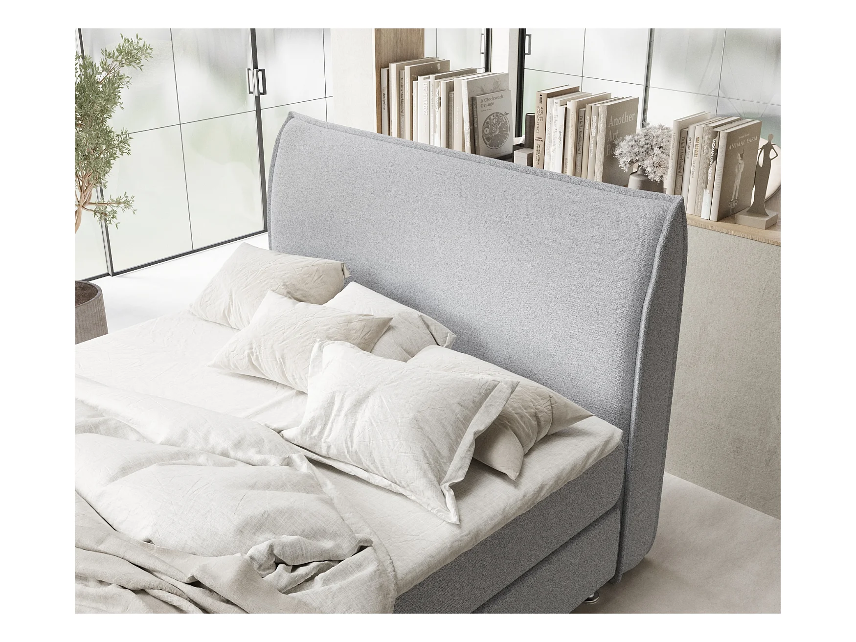 Boxspringbett aus Webstoff Otus - Matratze - Toppermatratze - 180x200 cm - grau