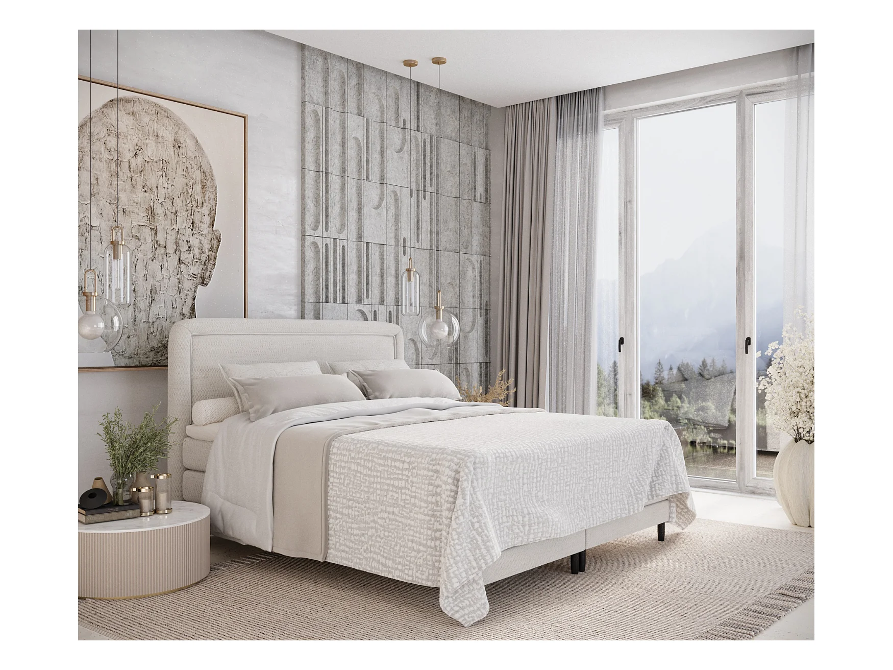 Boxspringbett aus Chenille-Stoff Dove - Matratze - Toppermatratze - 180x200 cm - beige
