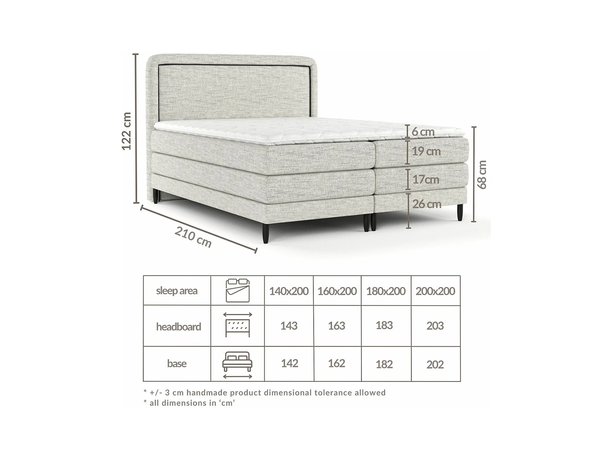 Boxspringbett aus Webstoff Rimini - Matratze - Toppermatratze - 180x200 cm - beige
