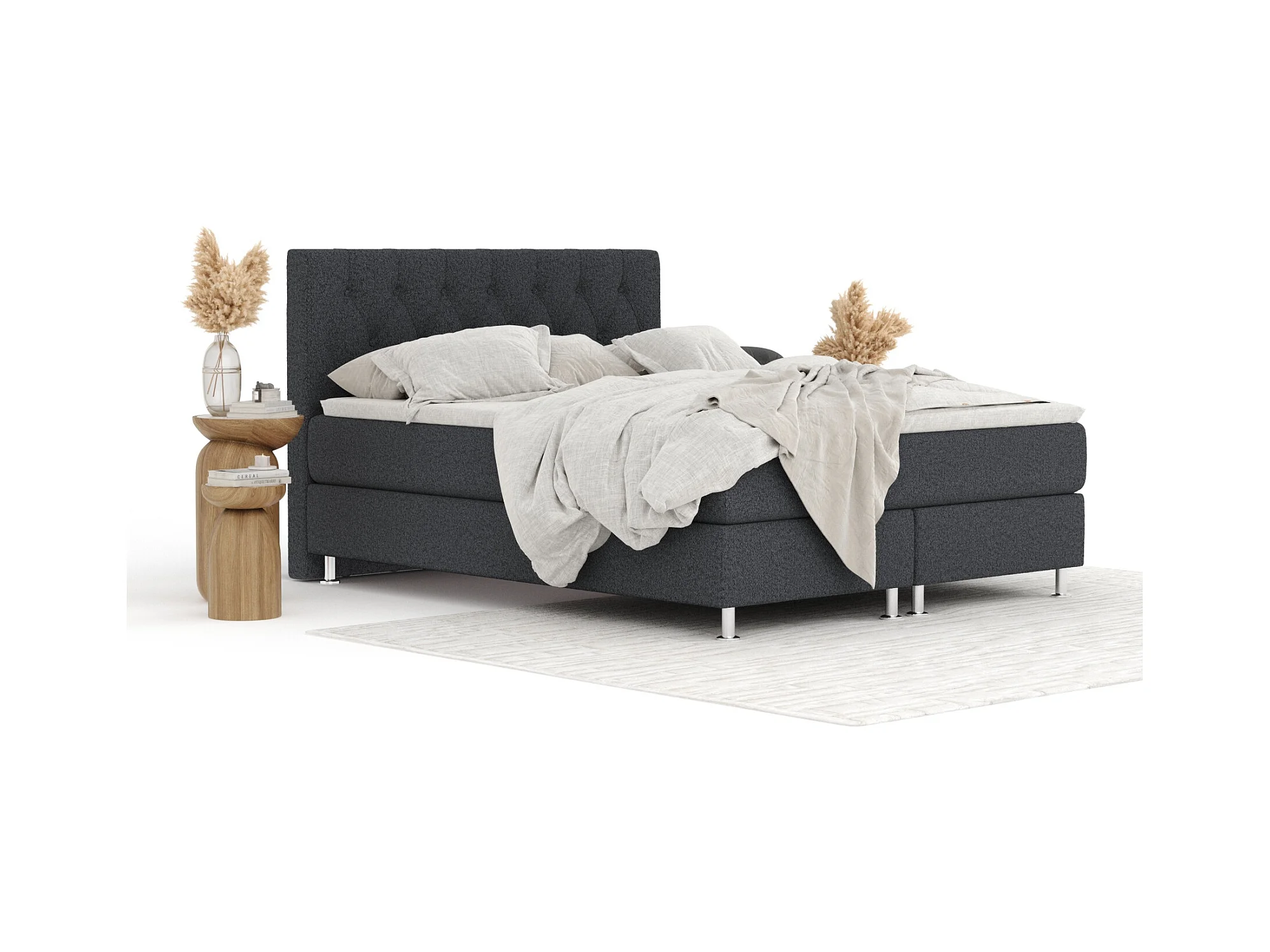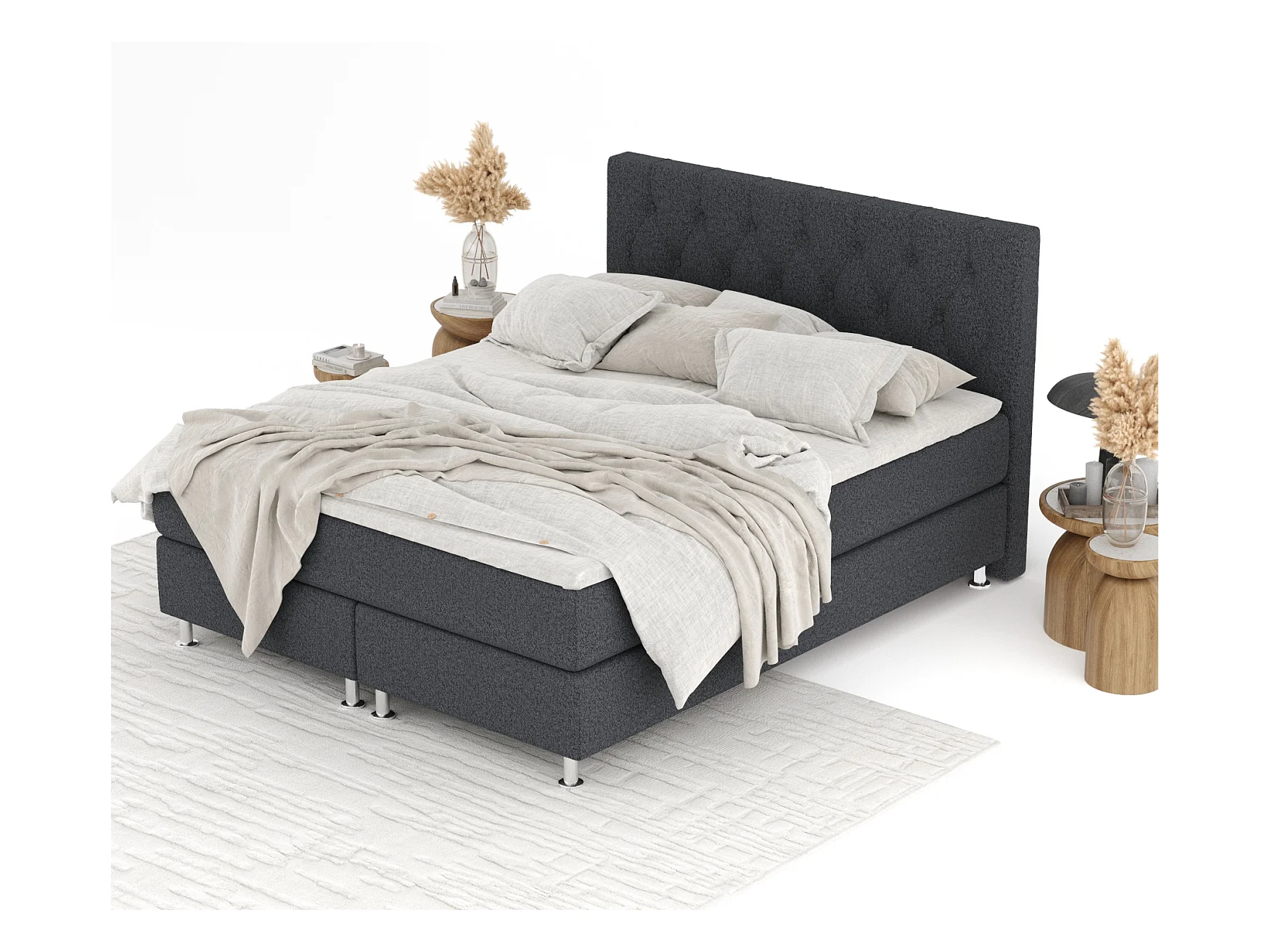 Boxspringbett aus Webstoff Sorrento - Matratze - Toppermatratze - 200x200 cm - schwarz