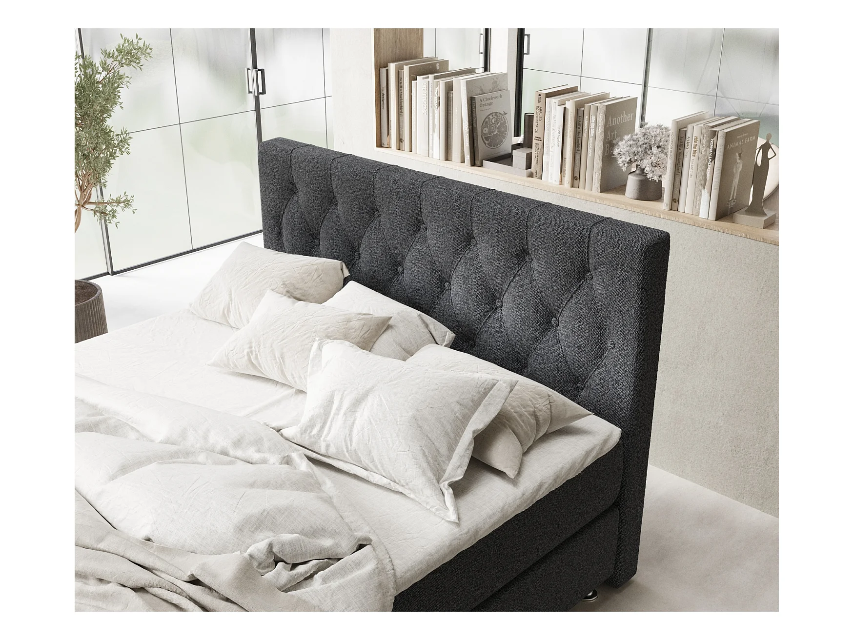 Boxspringbett aus Webstoff Excelsior - Matratze - Toppermatratze - 200x200 cm - schwarz