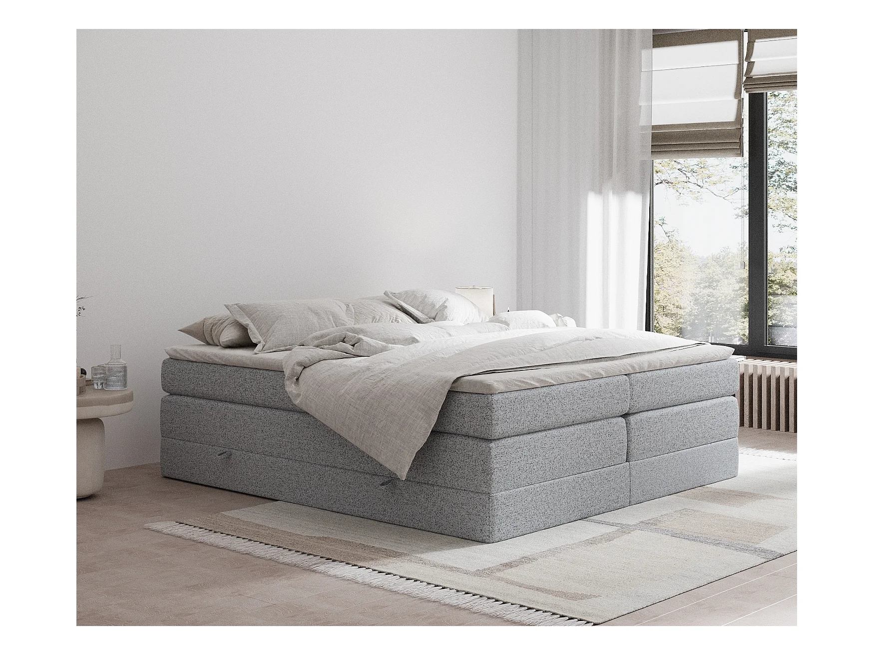Boxspringbett aus Webstoff Juniper - Matratze - Toppermatratze - 200x200 cm - grau
