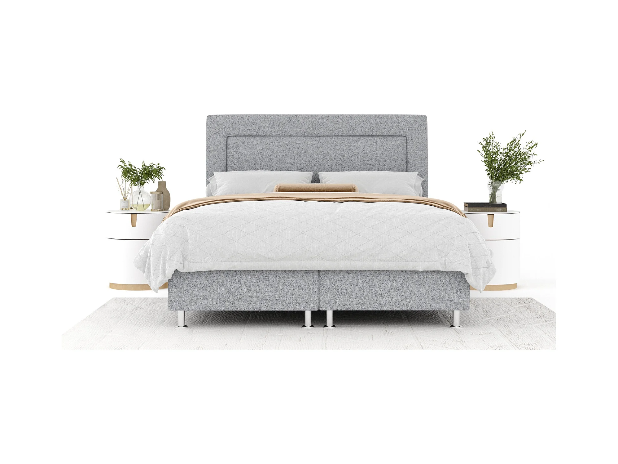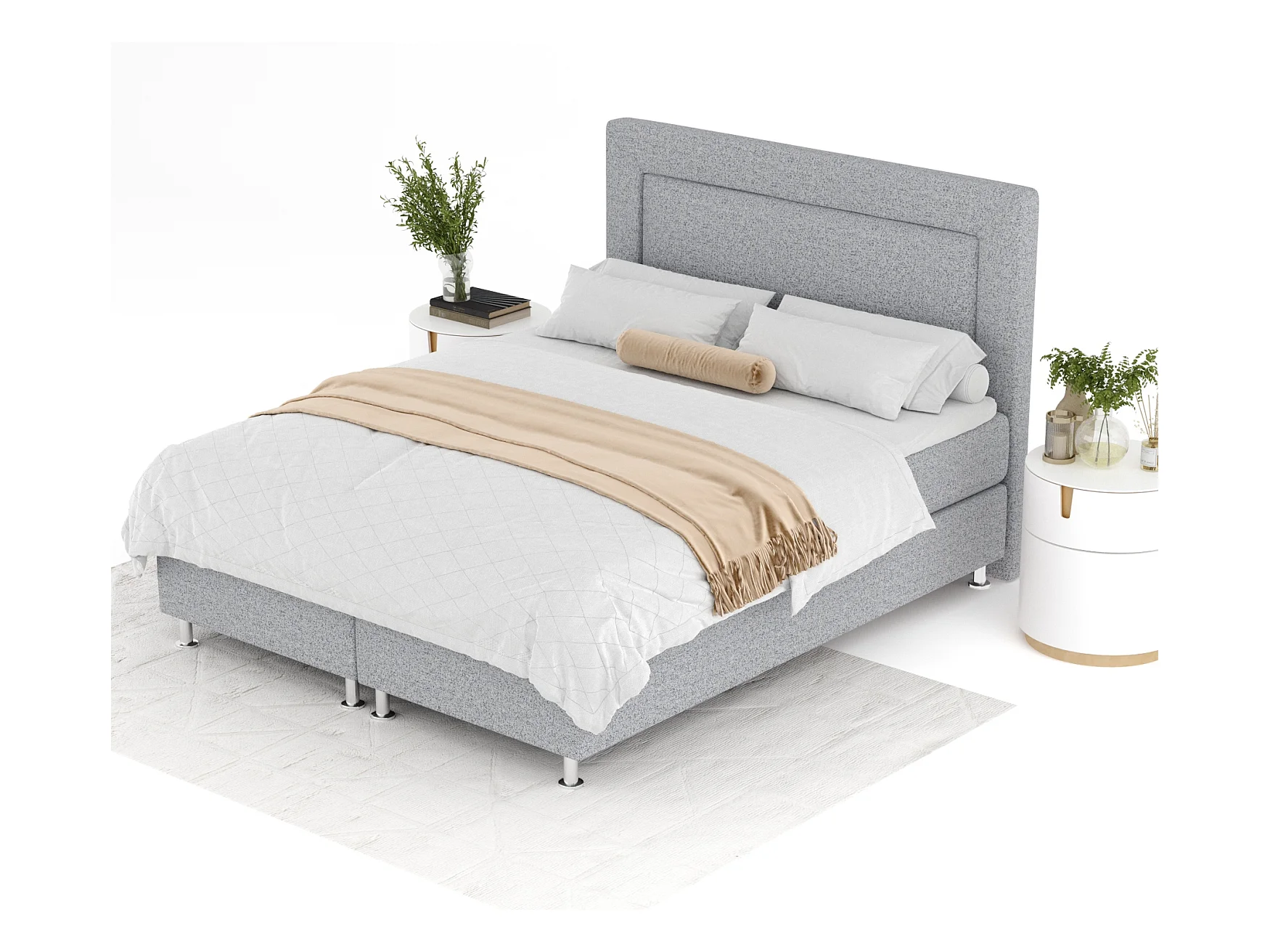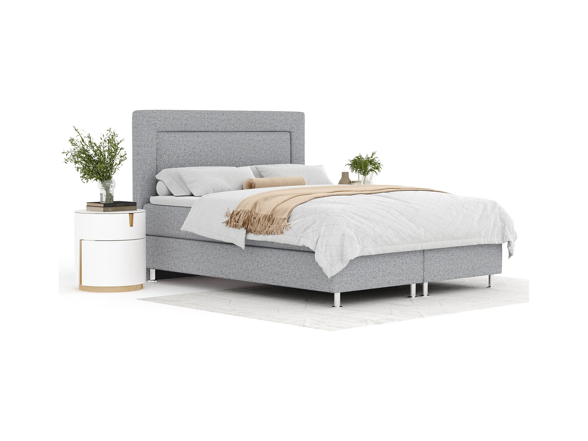 Boxspringbett aus Webstoff Excelsior - Matratze - Toppermatratze - 200x200 cm - hellgrau