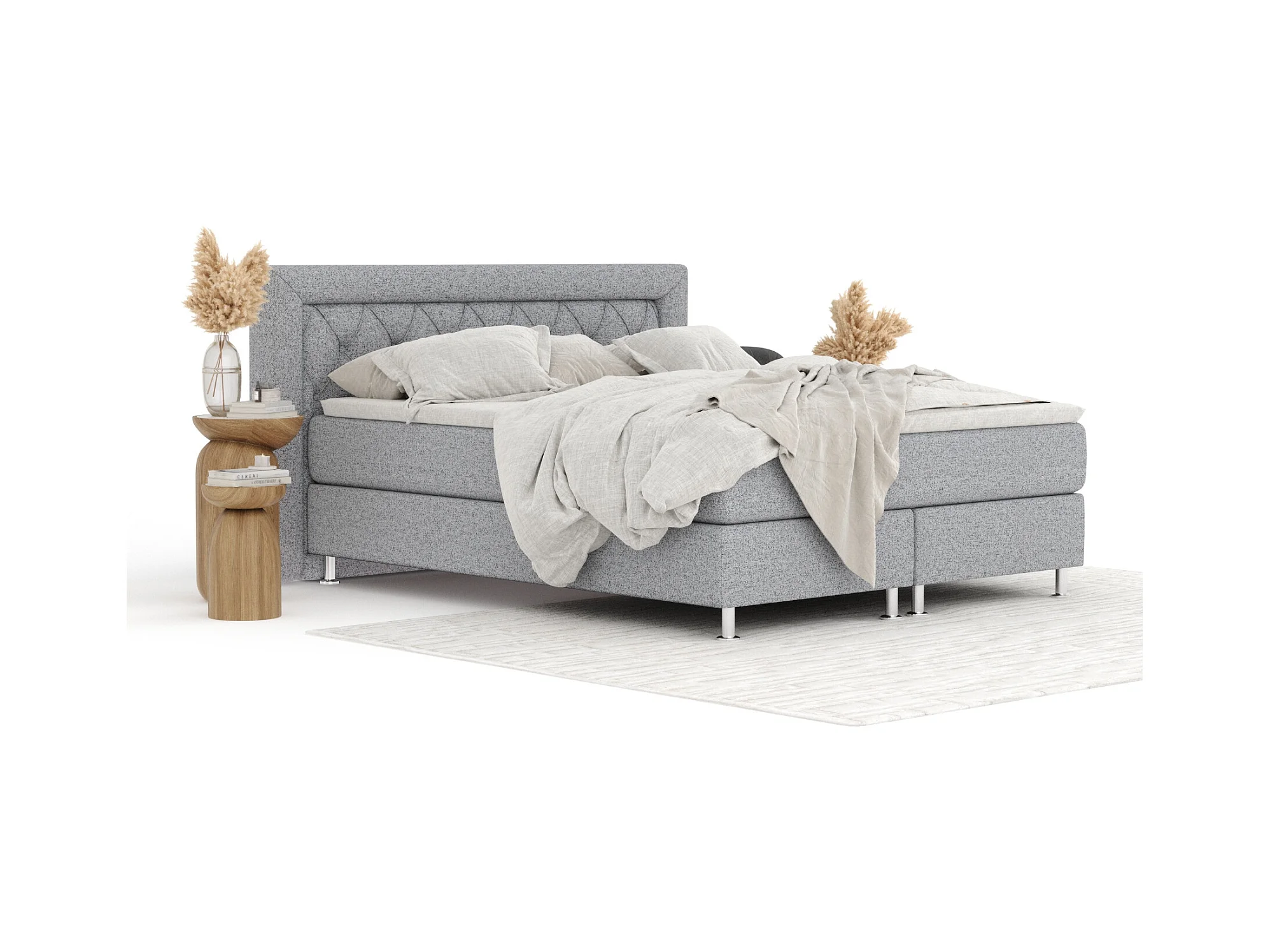 Boxspringbett aus Webstoff Sorrento - Matratze - Toppermatratze - 160x200 cm - hellgrau