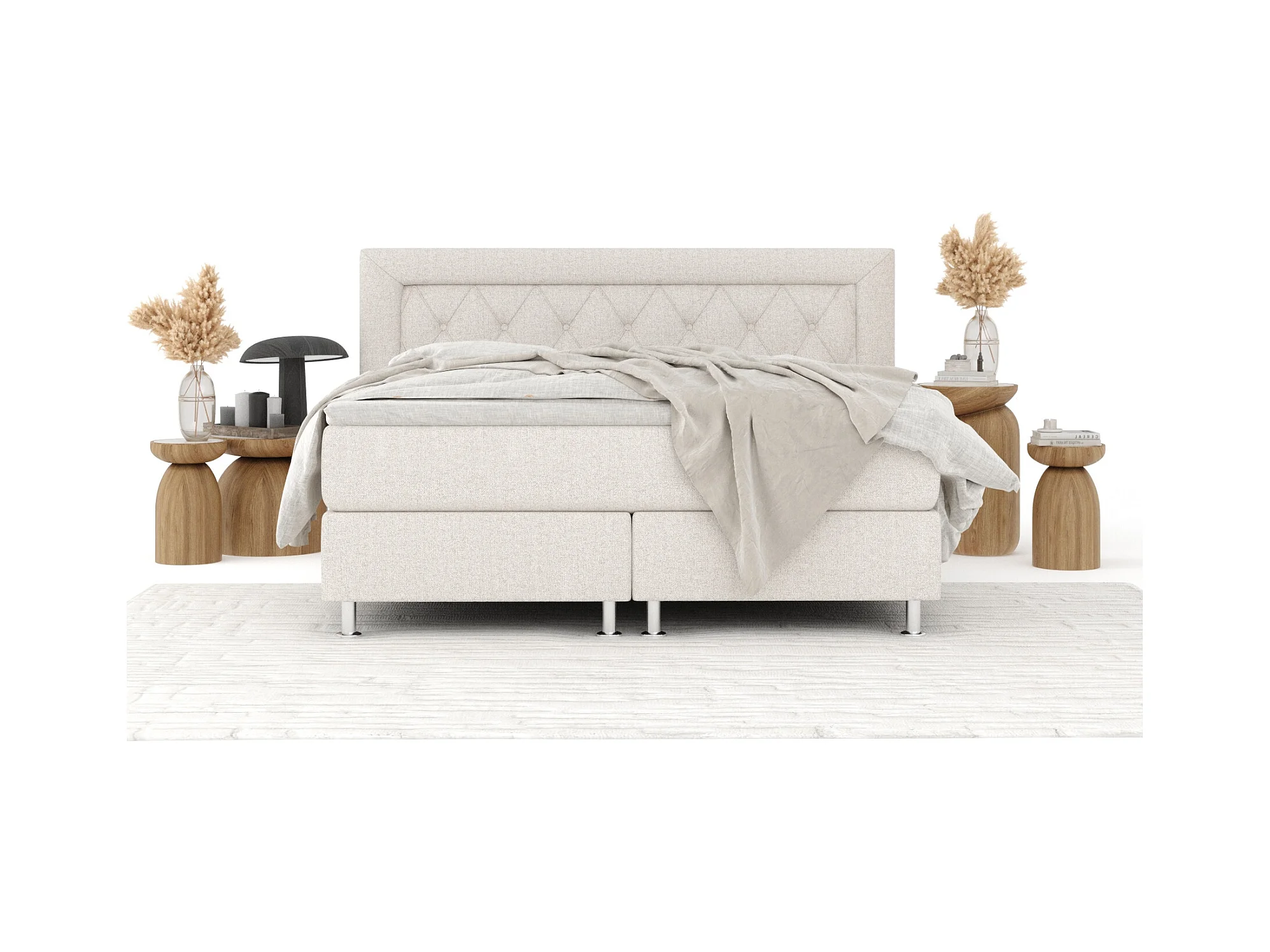 Boxspringbett aus Webstoff Soto - Matratze - Toppermatratze - 180x200 cm - beige